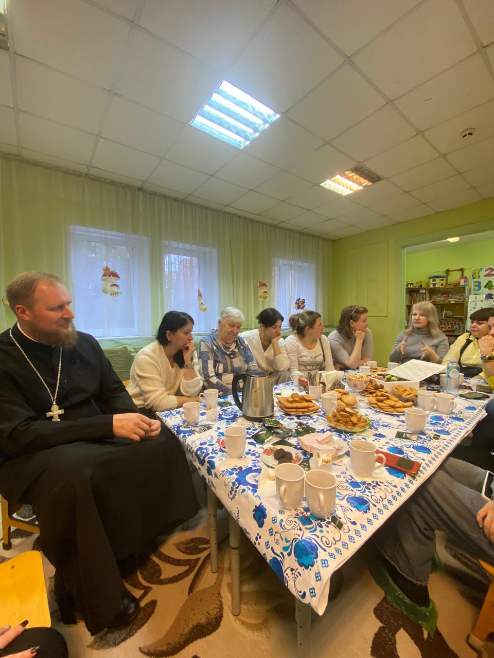 После праздничного мероприятия в формате чаепития была организована встреча со священником «100 вопросов батюшке». Отец Павел ответил на волнующие родителей вопросы о воспитании и церковной жизни. Встреча прошла в дружеской и теплой атмосфере.