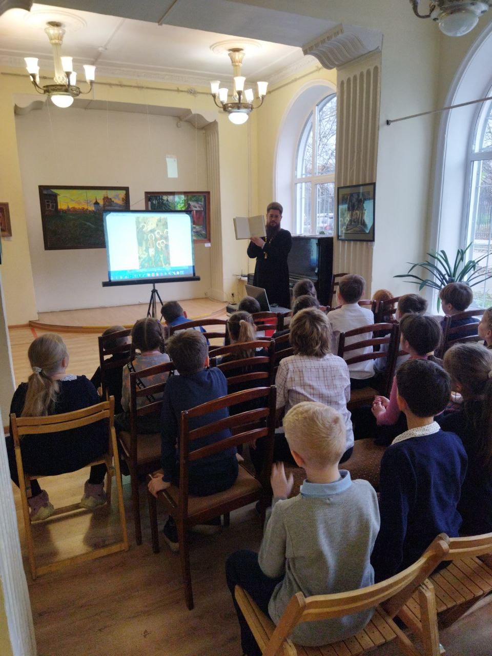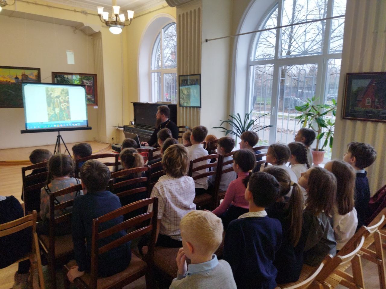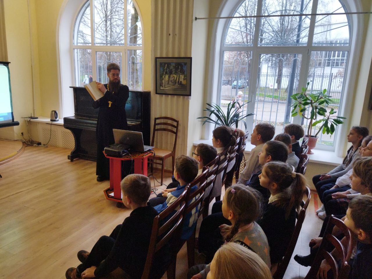 14 ноября, в рамках Московских областных Рождественских образовательных чтений «Просвещение и нравственность: формирование личности и вызовы времени», в Культурном центре города Фрязино прошла встреча учащихся начальной школы школы № 1 города Фрязино с настоятелем Державного храма Наукограда священником Димитрием Третьяковым.