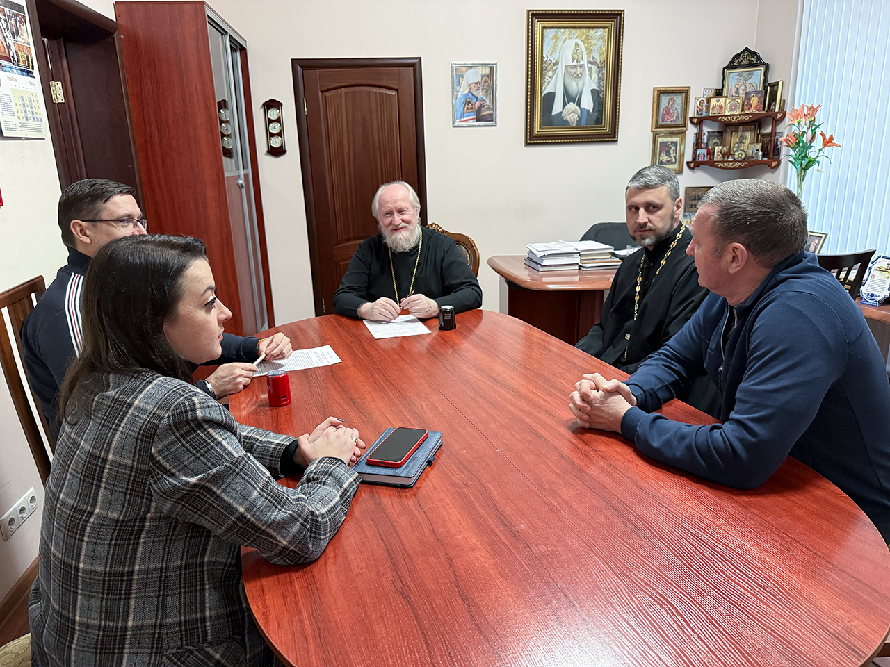 17 ноября в Троицком соборе города Щёлково состоялась рабочая встреча благочинного Щёлковского церковного округа протоиерея Андрея Ковальчука с председателем Комитета по культуре, делам молодёжи, спорту, туризму и физической культуре Администрации городского округа Щёлково Кириллом Константиновичем Чепелевским и начальником отдела по работе с молодёжью Комитета по физической культуре, спорту и работе с молодёжью Администрации городского округа Щёлково Юлией Александровной Зленко.