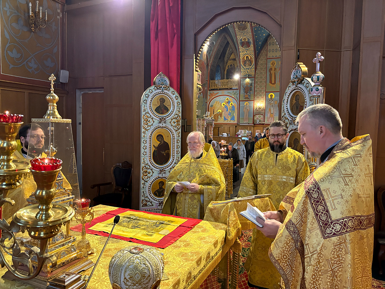 Богослужение возглавил благочинный Щёлковского церковного округа протоиерей Андрей Ковальчук, в сослужении клириков собора священника Романа Галиева и диакона Кирилла Ковальчук, и клирика Ксениевского храма деревни Медвежьи Озёра священника Димитрия Задорожного.