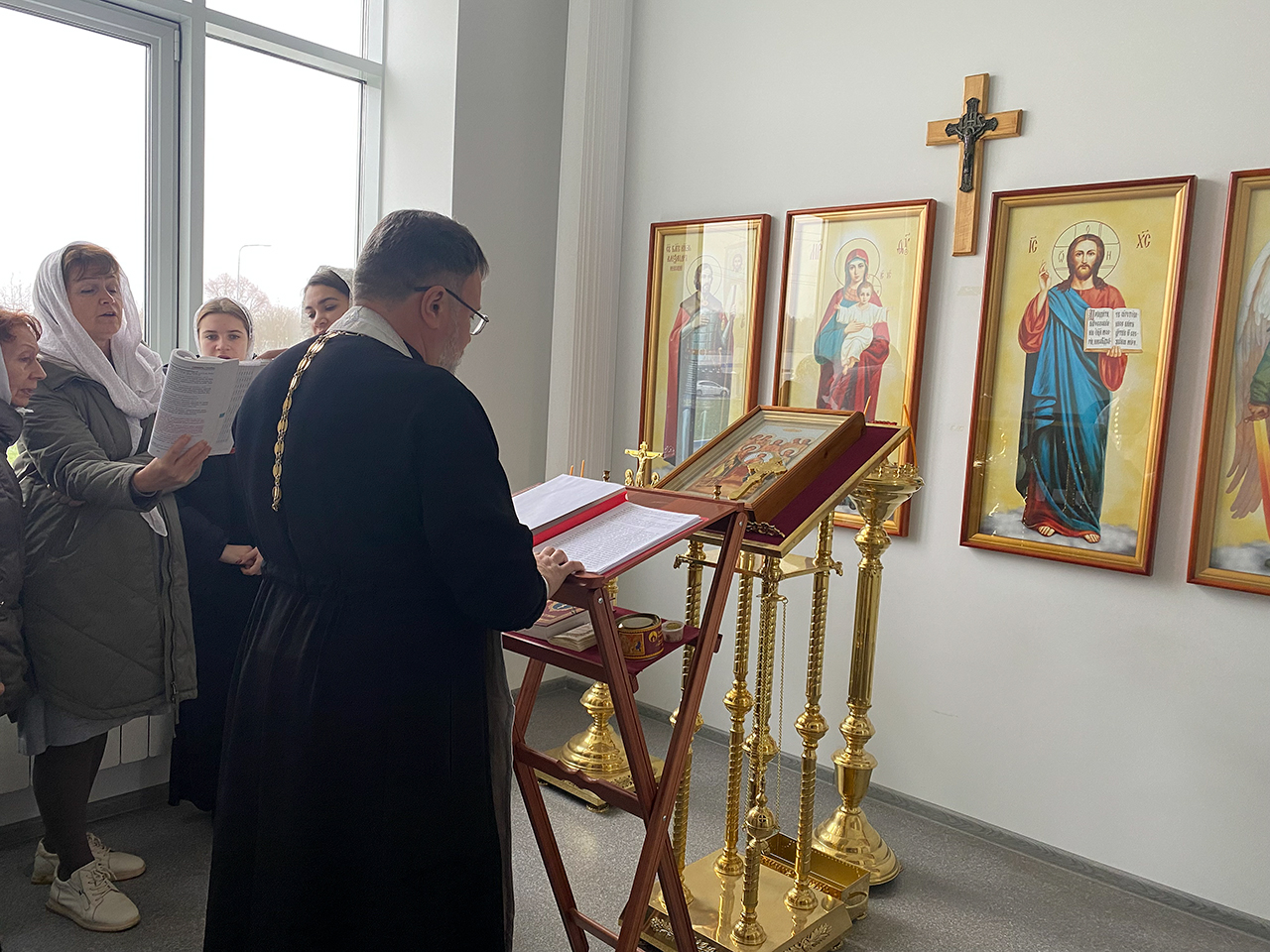 Богослужение в молельной комнате, в честь Архистратига Михаила, совершил настоятель Князь-Владимирского храма деревни Новофрязино священник Виктор Долгих в сопровождении певчих под руководством регента храма Киры Пейогло.