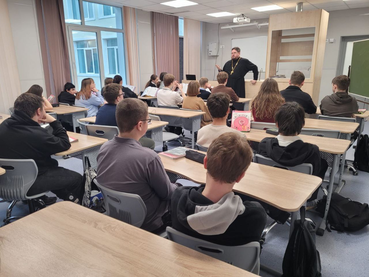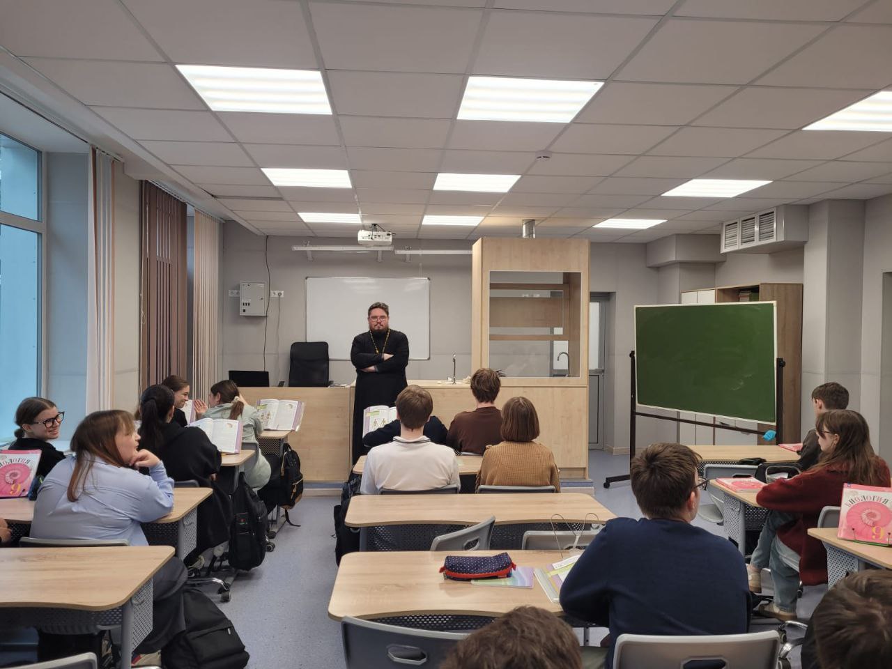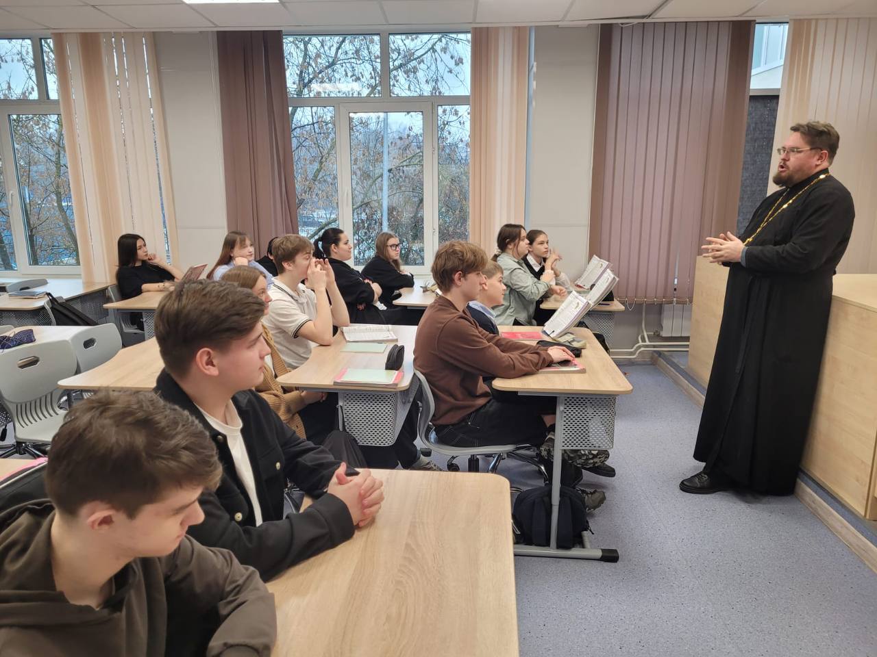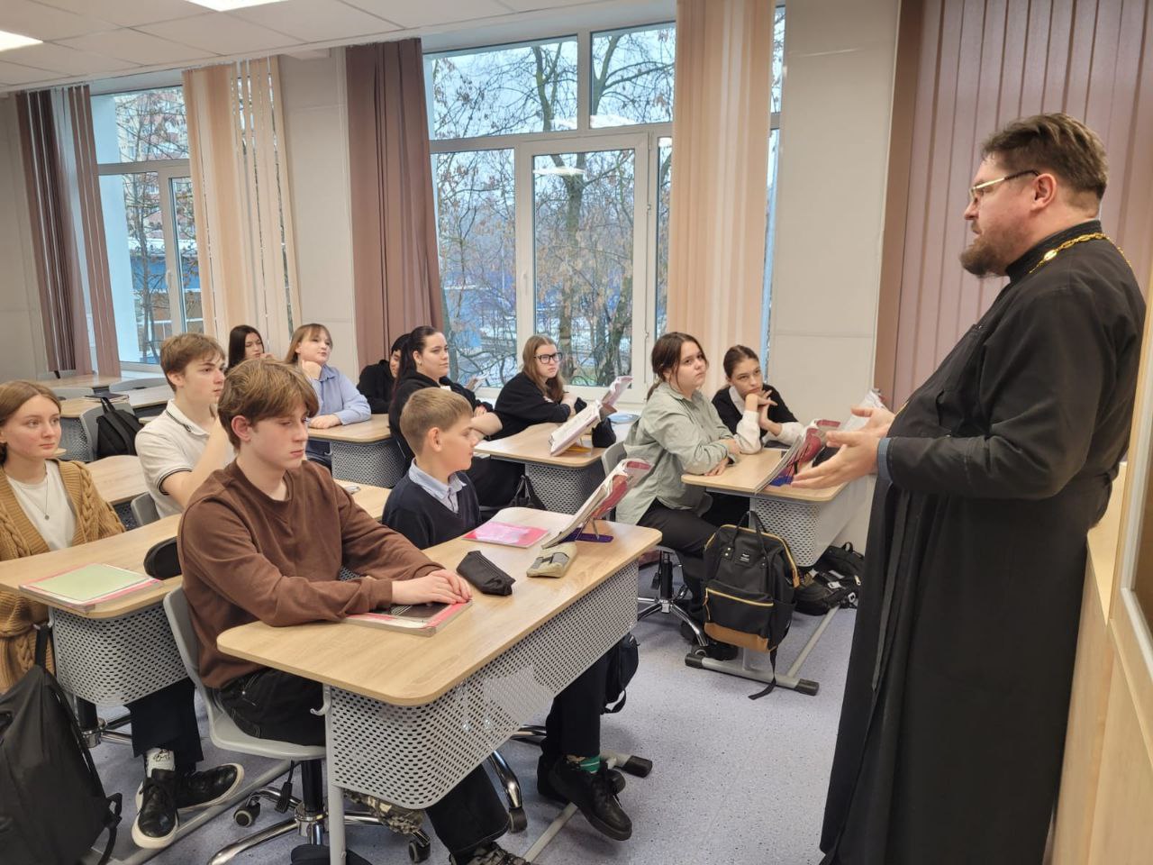 26 ноября, в рамках Рождественских образовательных чтений, в школе №3 города Щёлково прошла встреча учащихся с заместителем председателя Епархиального отдела религиозного образования и катехизации священником Александром Амелиным на тему «Об основах семьи».