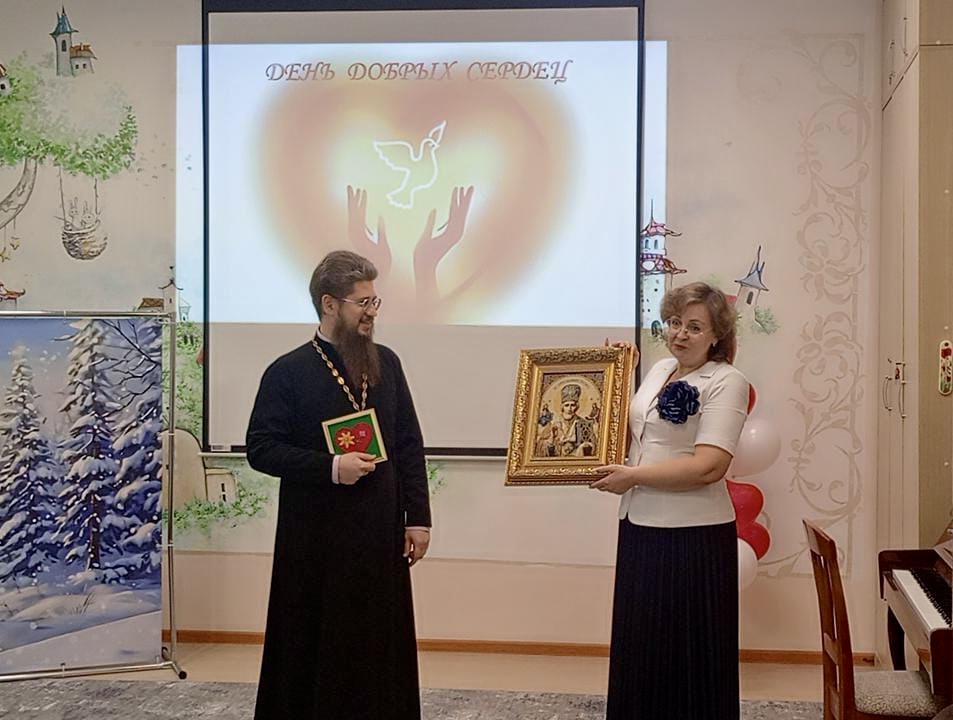 Настоятель Державного храма Наукограда священник Димитрий Третьяков поздравил всех с праздником и передал в дар детскому саду икону святителя Николая Чудотворца с пожеланиями радости, мира, терпения и благополучия всем детям, родителям и сотрудникам детского сада.