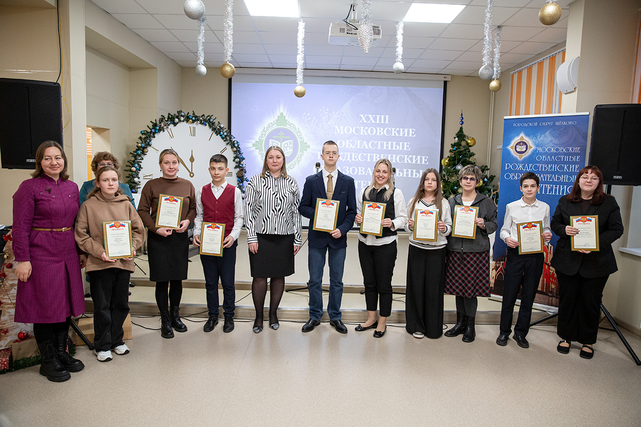 Благочинный Щёлковского церковного округа протоиерей Андрей Ковальчук и заместитель председателя Комитета по образованию Администрации городского округа Щёлково Виктория Александровна Файрушина наградили педагогов и обучающихся, принявших активное участие в мероприятиях в рамках Рождественских чтений, архиерейскими грамотами Балашихинской епархии, грамотами Щёлковского благочиния, грамотами Комитета по образованию Администрации городского округа Щёлково и памятными подарками.
