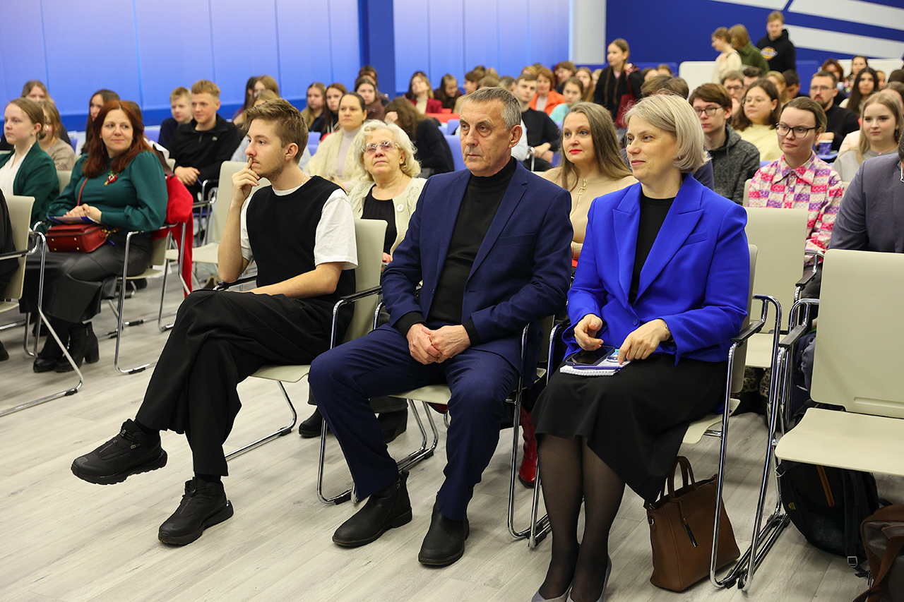 Следующим спикером конференции приглашен учитель истории и мировой художественной культуры МОУ СОШ 16, победителя Всероссийского конкурса «Учитель года России-2022», человек, внесенный в Книгу рекордов России за урок, проведенный на борту атомного ледокола – Дмитрий Лутовинов.