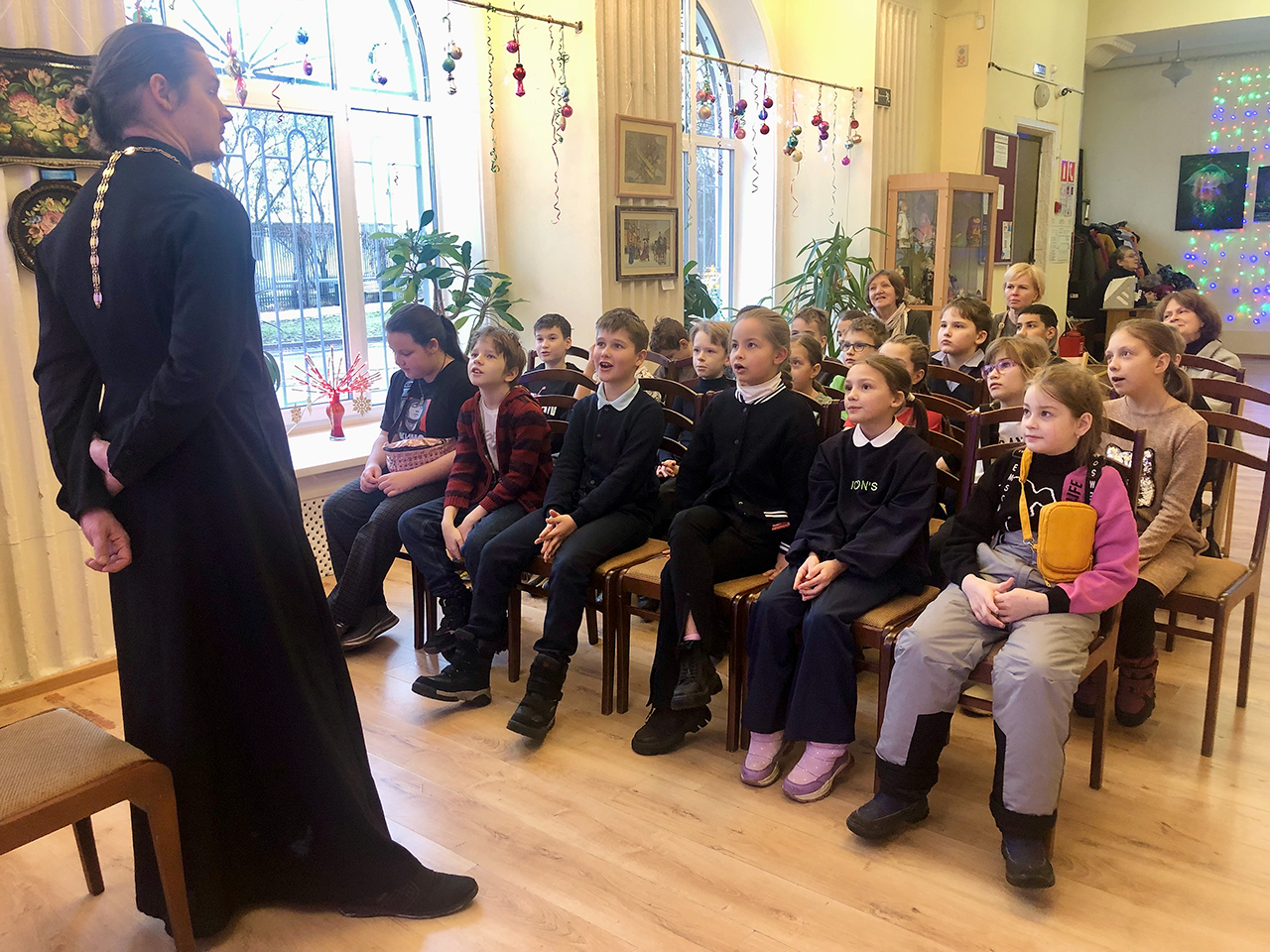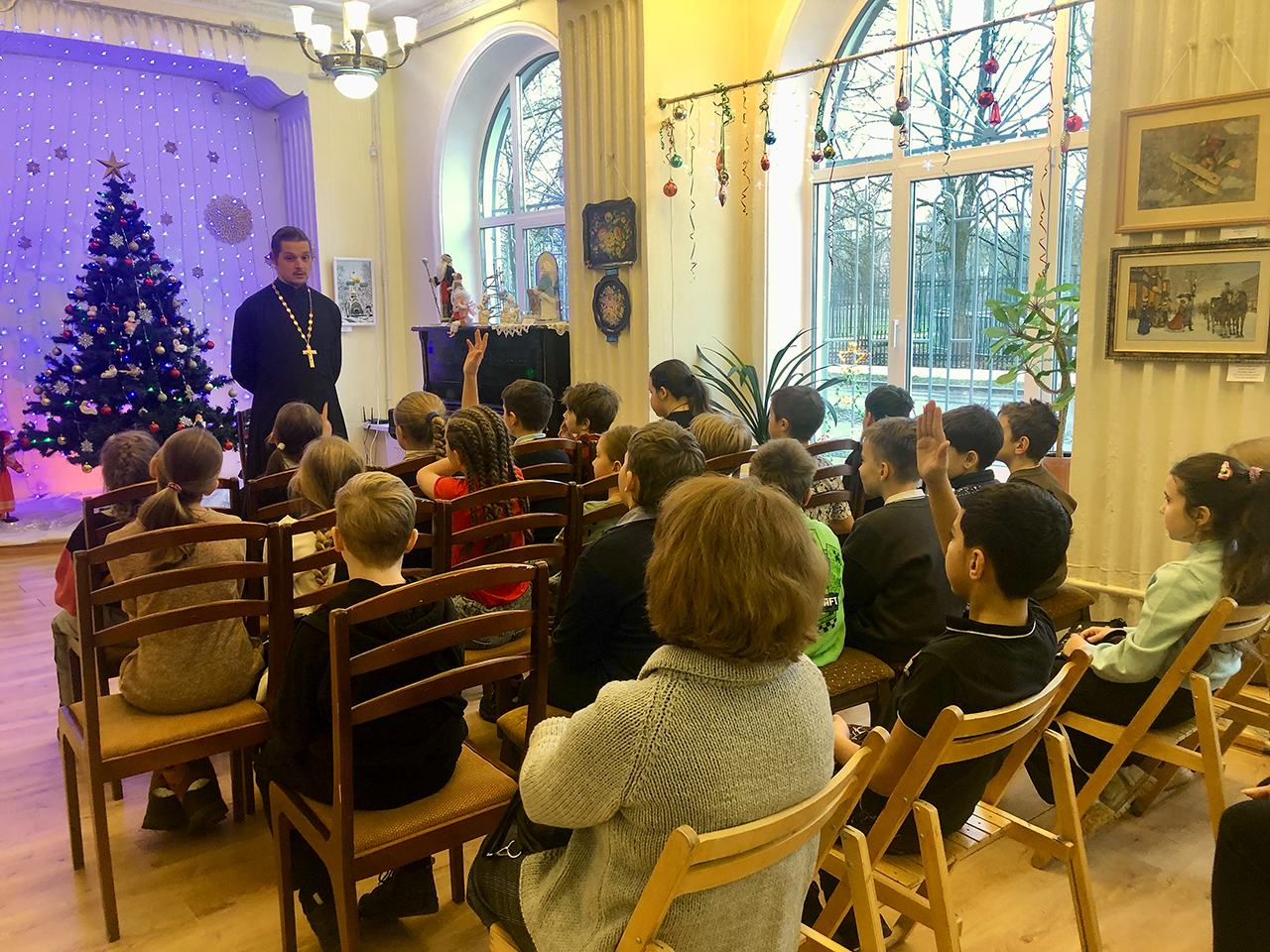 Батюшка рассказал ребятам о традициях подготовки к празднику и праздновании Рождества Христова, напомнил о том, как важно поздравить всех родных и близких с праздником.