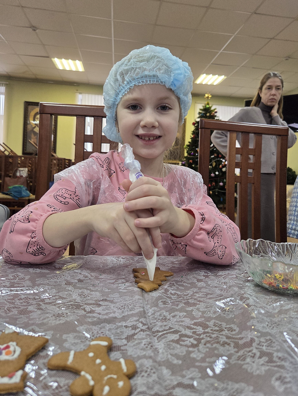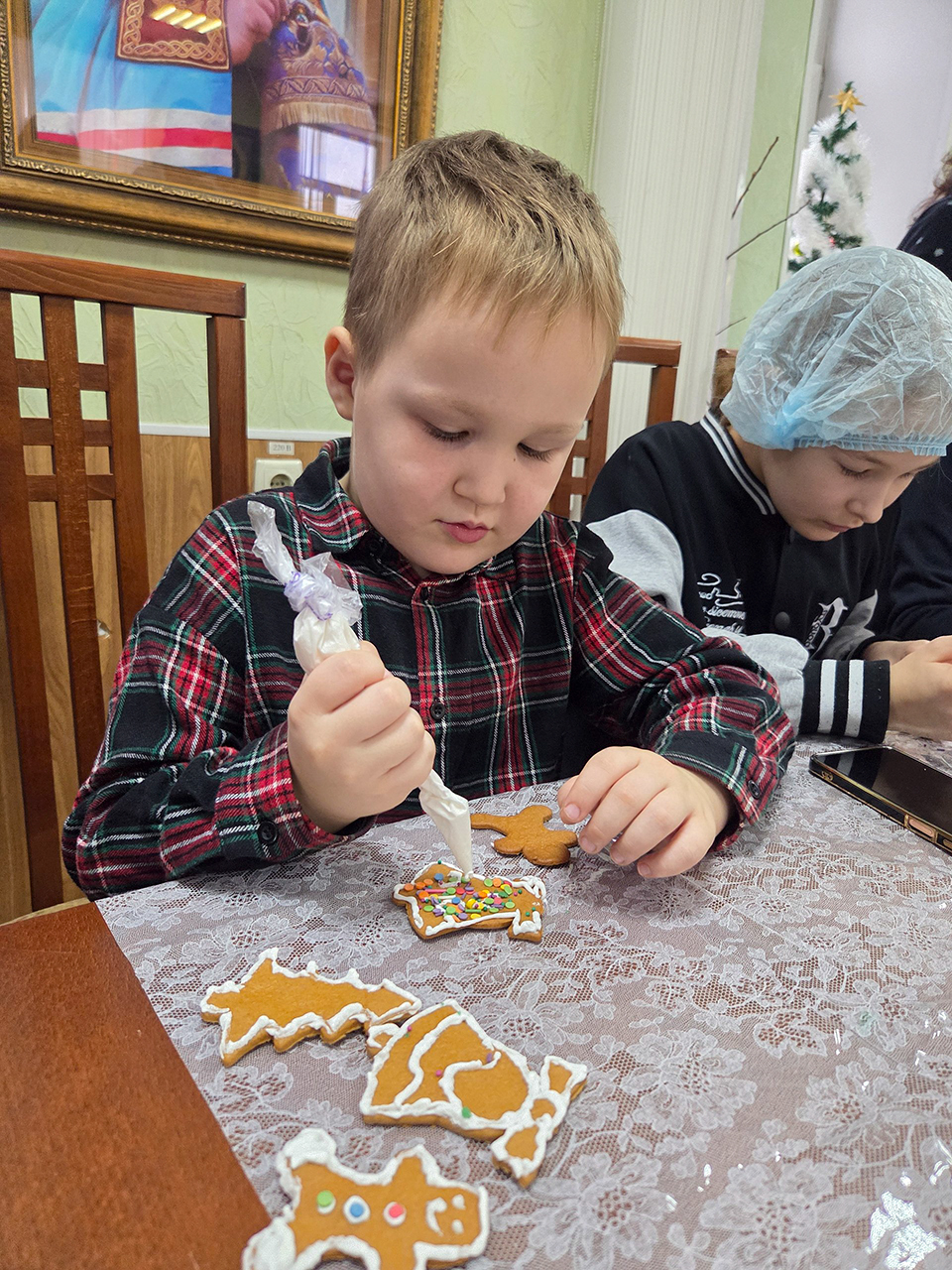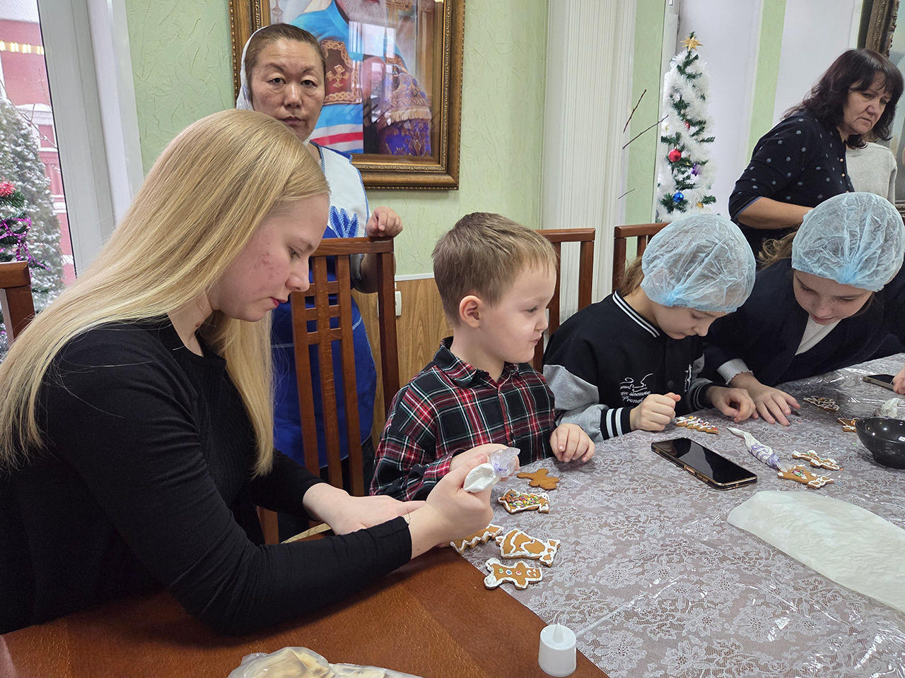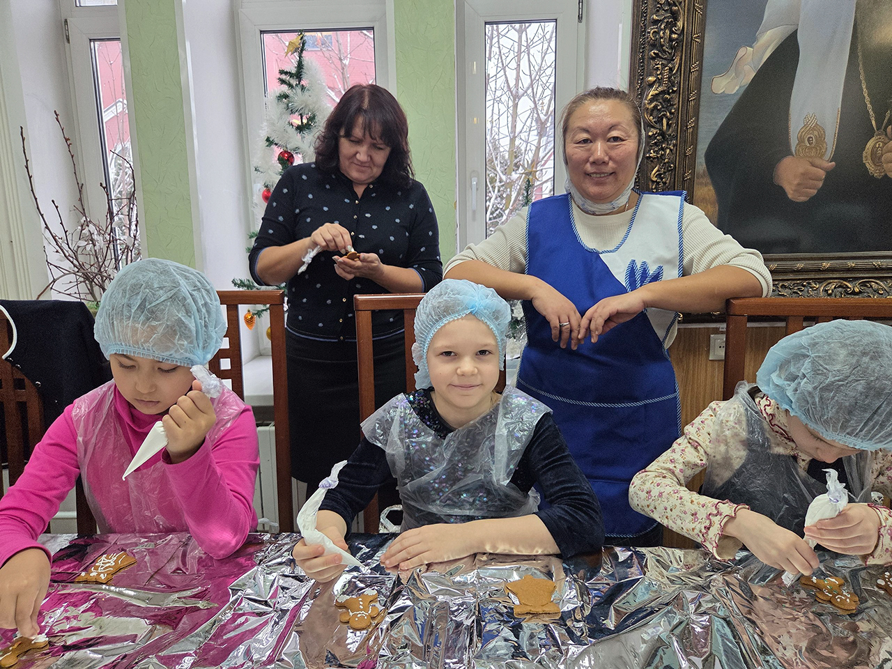Мастер-класс по изготовлению рождественского имбирного печенья провели родители воспитанников Людмила Александровна Царькова и повар Троицкого собора Наталья Давидовна Ким.