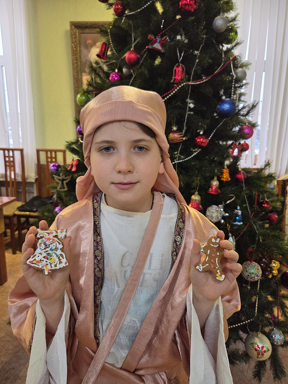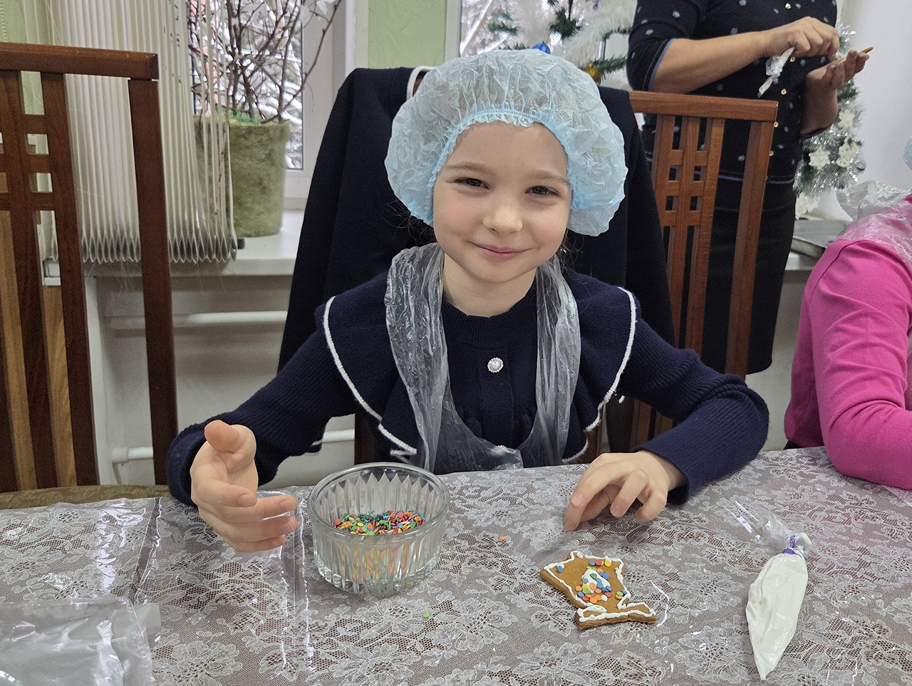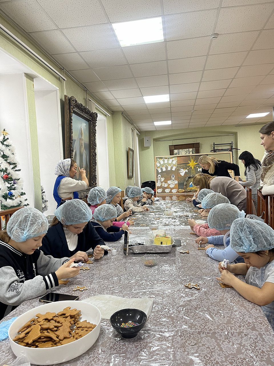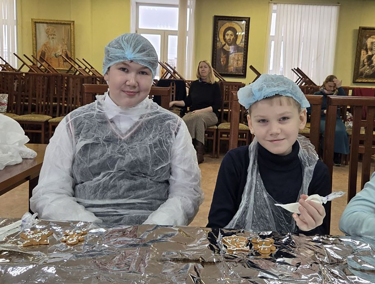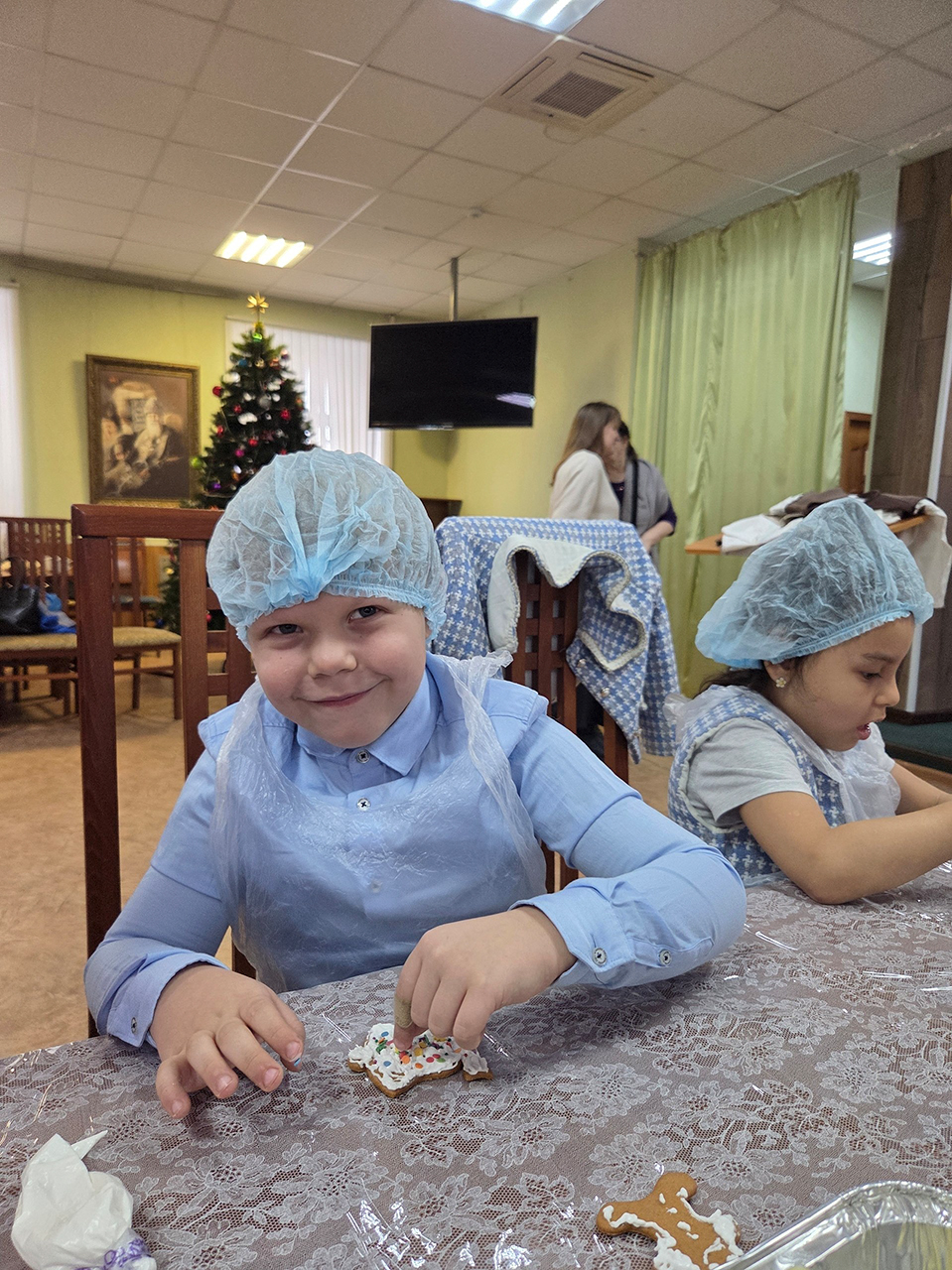 Мастер-класс по изготовлению рождественского имбирного печенья провели родители воспитанников Людмила Александровна Царькова и повар Троицкого собора Наталья Давидовна Ким.