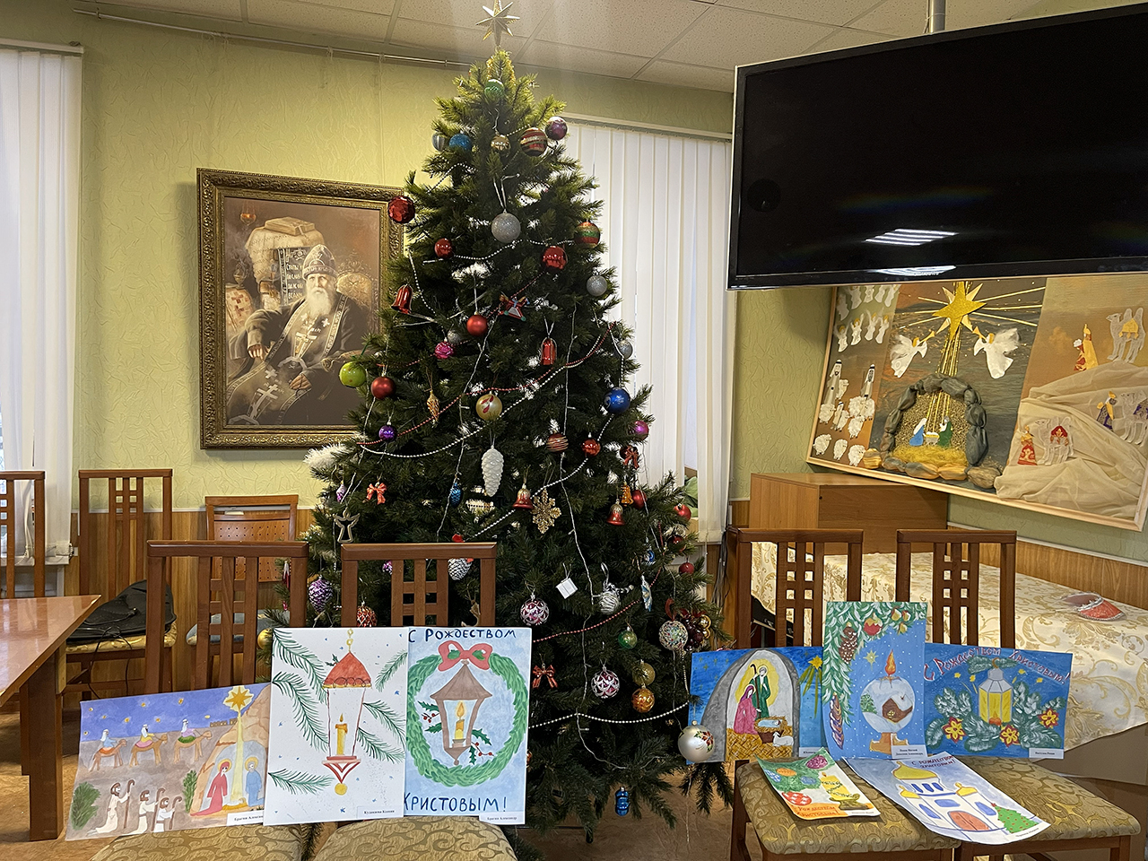 Под руководством преподавателя изостудии Светланы Викторовны Гришкиной дети подготовили рисунки на рождественскую тематику в стиле праздничных открыток.