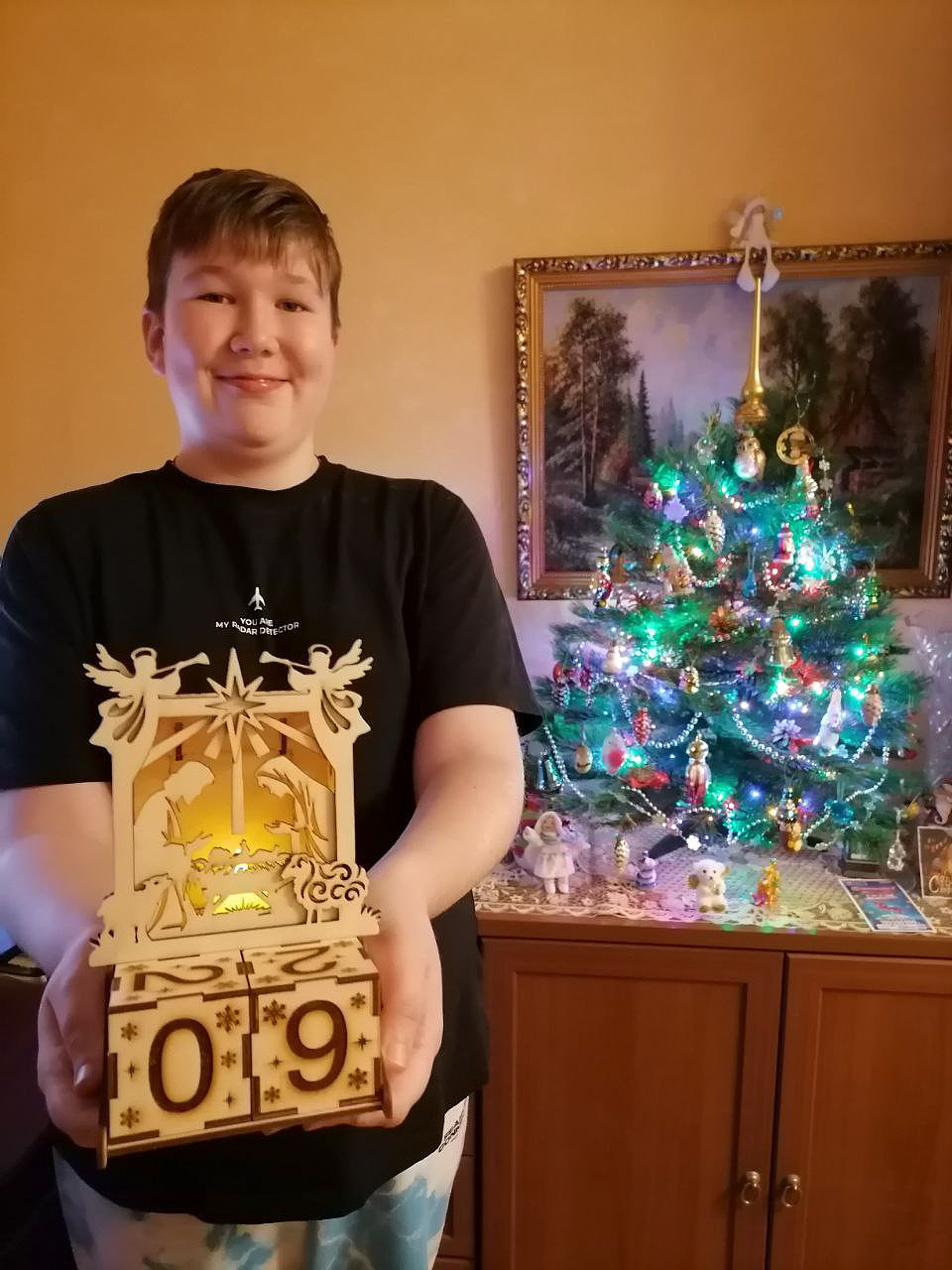 Директор воскресной школы Анна Александровна Медведева подарила каждому учащемуся деревянный конструктор, из которого дети должны собрать календарь ожидания Рождества. Конструктор изготовлен Благотворительным фондом «Рождественская звезда» (генеральный директор – Фураев Алексей Владимирович).