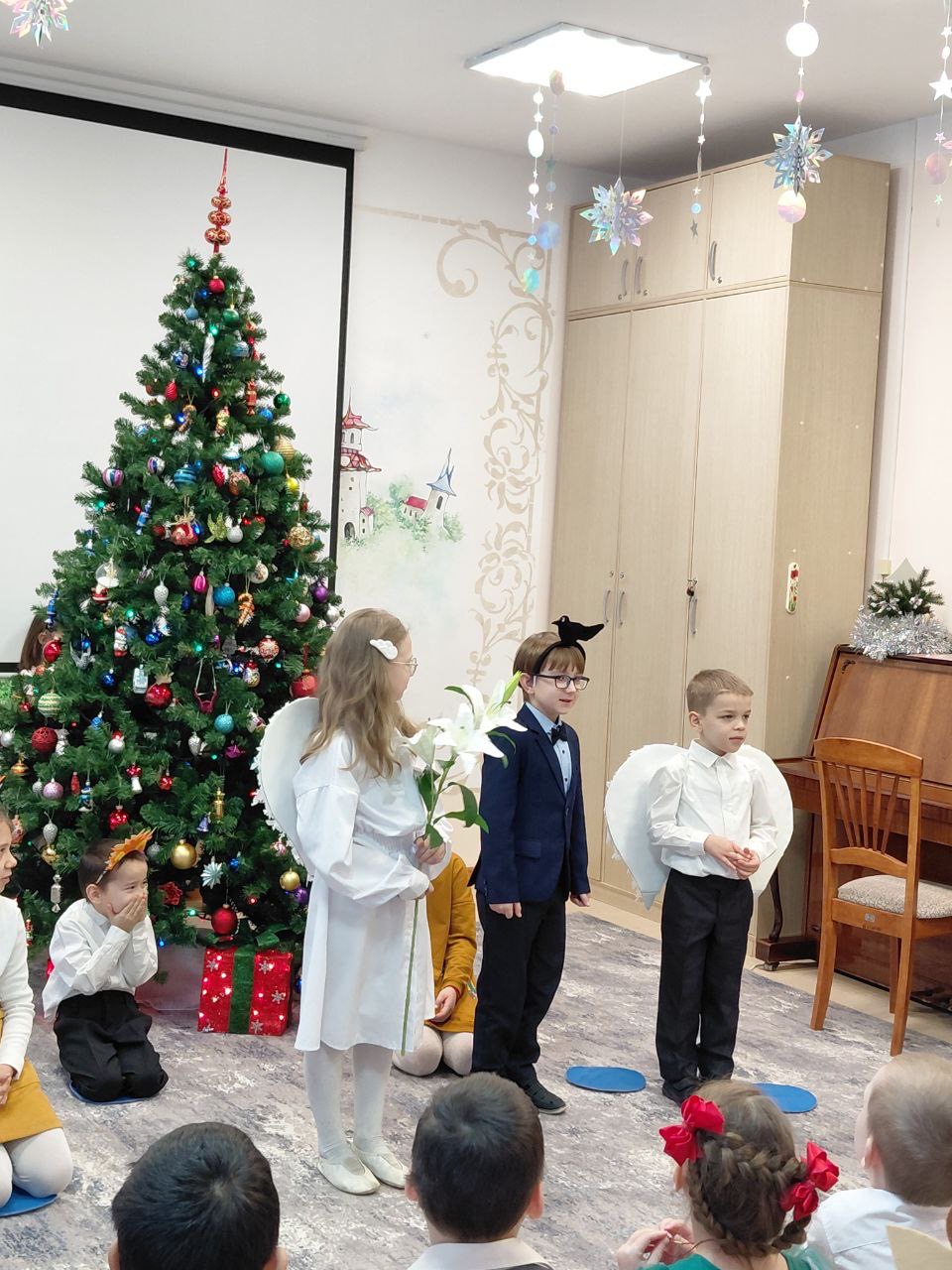 Настоящим сюрпризом стало выступление малышей из детского сада: они с трогательной искренностью читали рождественские стихотворения.