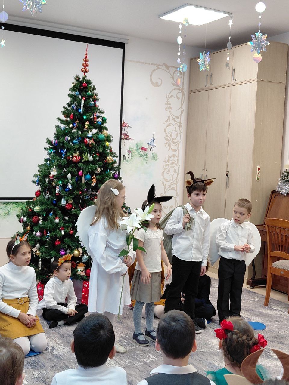 Воспитанники воскресной школы показали ребятам свои рождественские этюды и спели рождественскую колядку.