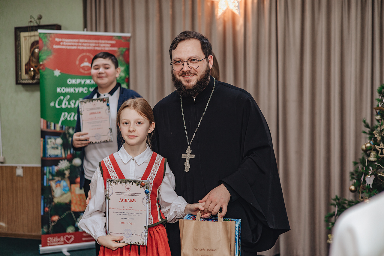 С душевными словами о важности сохранения и продвижения православных ценностей выступил ответственный по культуре в Щёлковском благочинии, клирик Троицкого собора города Щёлково священник Роман Галиев. Под аплодисменты зрителей он вручил заслуженные награды дипломы и подарки победителям в номинации «Индивидуальное выступление» от 12 до 14 лет.
