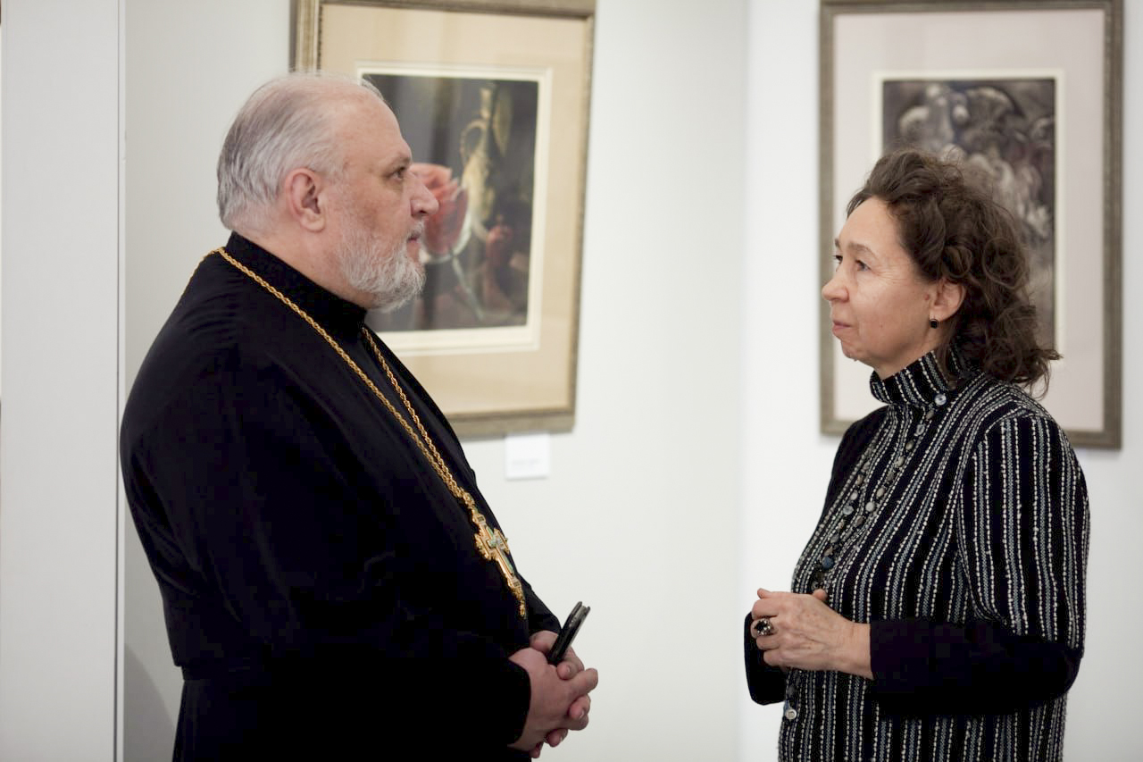 На открытие выставки собрались любители высокого искусства и молодёжь – учащиеся Щёлковского колледжа. Среди приглашённых гостей был клирик Державного храма города Фрязино протоиерей Александр Бутрин, которого связывает с художницей Мариной Лазаревой и её супругом многолетняя дружба.