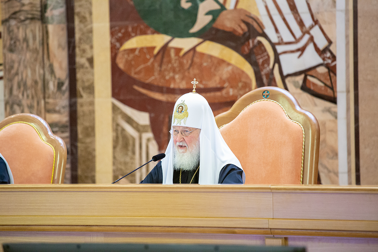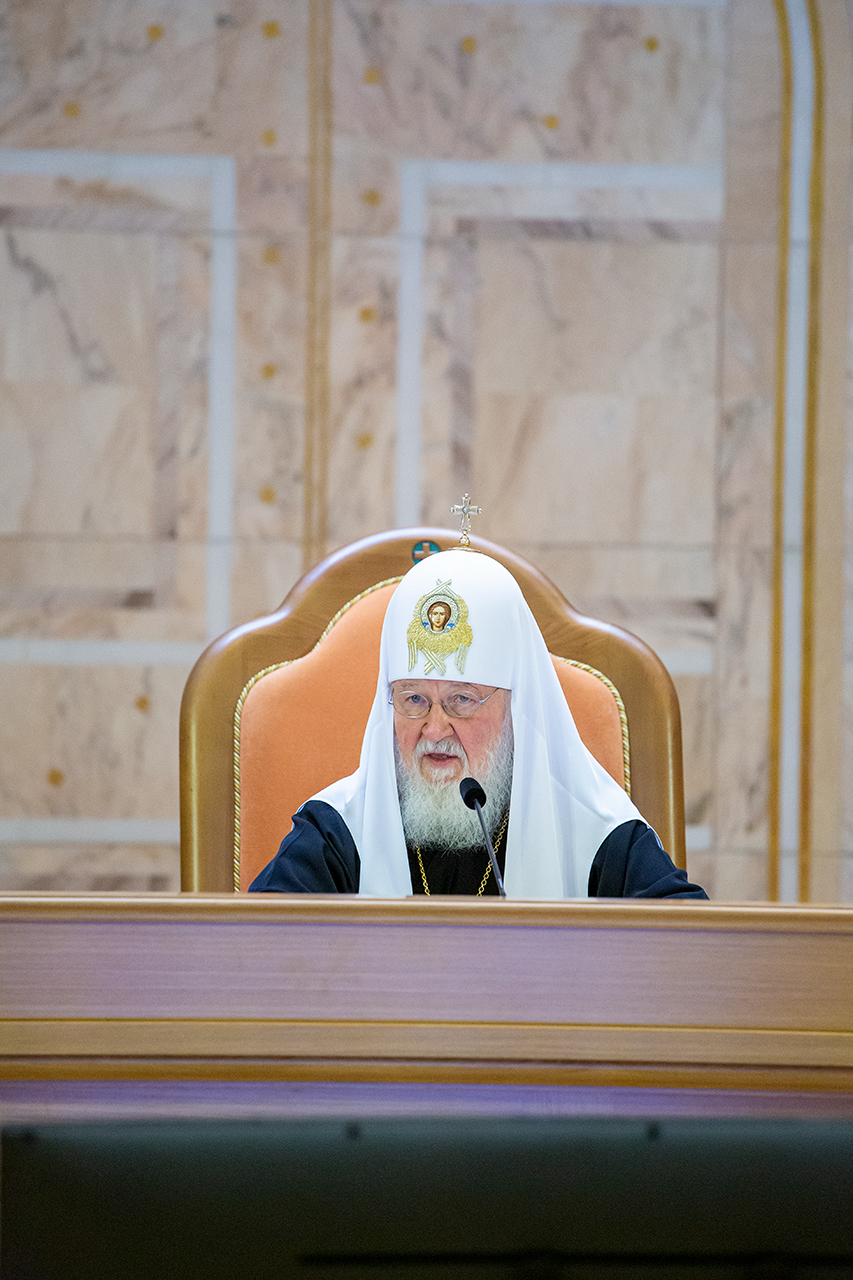 Святейший Патриарх Кирилл выступил с основным докладом.