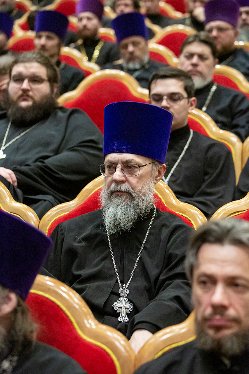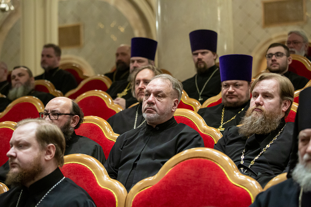 Далее с докладом выступил митрополит Крутицкий и Коломенский Павел, который представил обзор деятельности межъепархиальных и епархиальных отделов Московской митрополии за прошедший год.