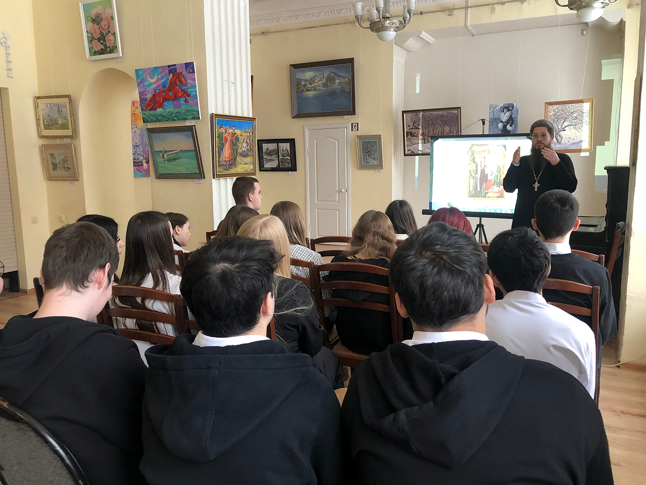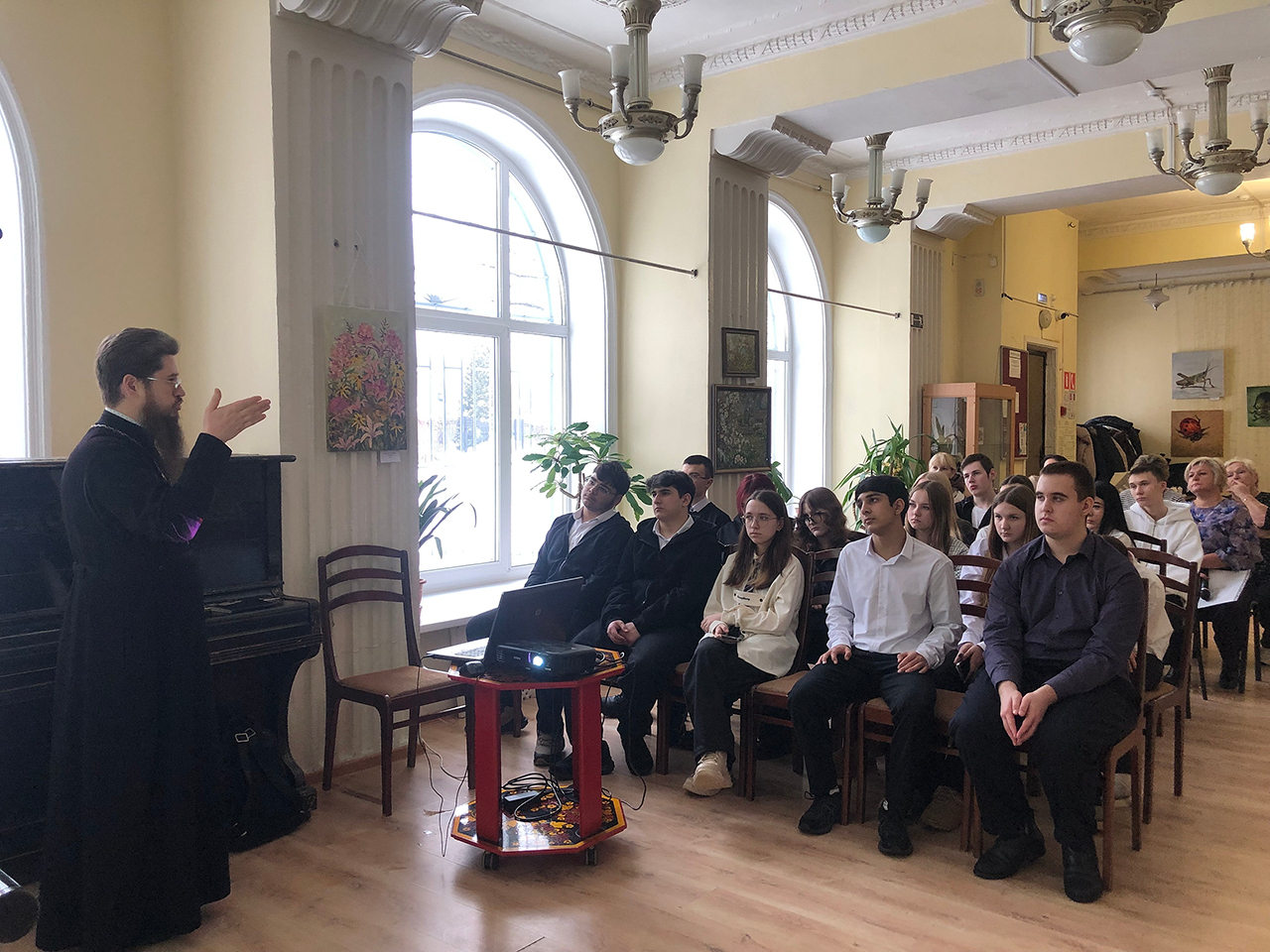 13 февраля в Культурном центре города Фрязино, в рамках Дня православной молодежи, состоялась встреча настоятеля Державного храма Наукограда священника Дмитрия Третьякова с девятиклассниками школы № 2 города Фрязино.