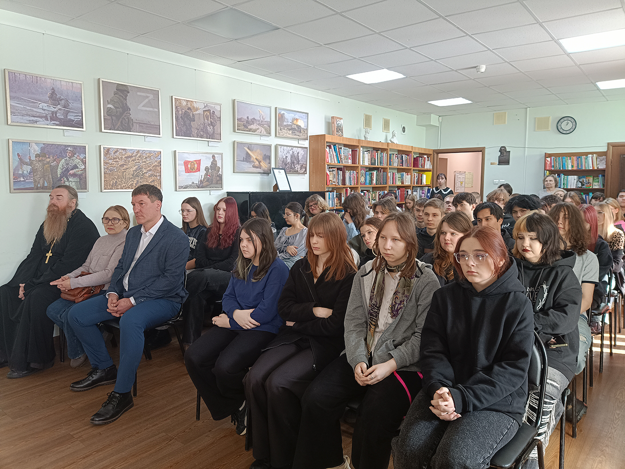 Также у нас в гостях побывал настоятель Георгиевского храма пос. Загорянский священник Сергий Павловский. Отец Сергий сам неоднократно бывал в зоне СВО, о чем рассказал присутствующим. Он подчеркнул важность поддержки наших военнослужащих, отметил, что ребята на СВО защищают наше будущее, будущее наших детей и внуков. Он добавил, что сегодняшняя наша мирная жизнь — это результат их мужества и самоотверженности.
