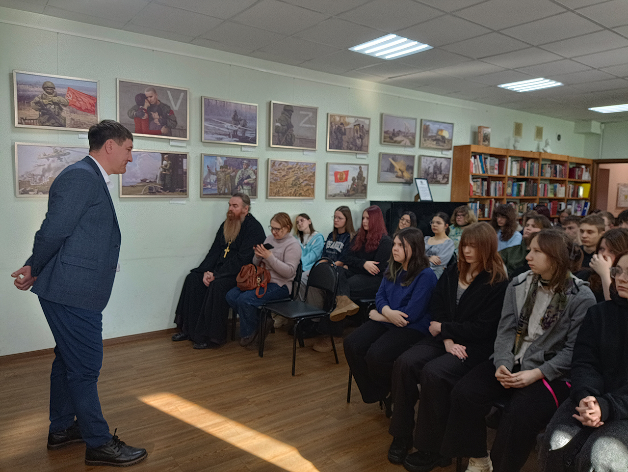 Это мероприятие прошло в рамках областной патриотической акции «Защитники: от книги к делу», приуроченной ко Дню защитника Отечества. Мы с гордостью представили книгу «Время героев», ставшую результатом совместного труда писателя и сценариста Олега Роя, фронтового поэта Сергея Лобанова и Студии военных художников имени М.Б. Грекова, при поддержке Министерства Обороны Российской Федерации.