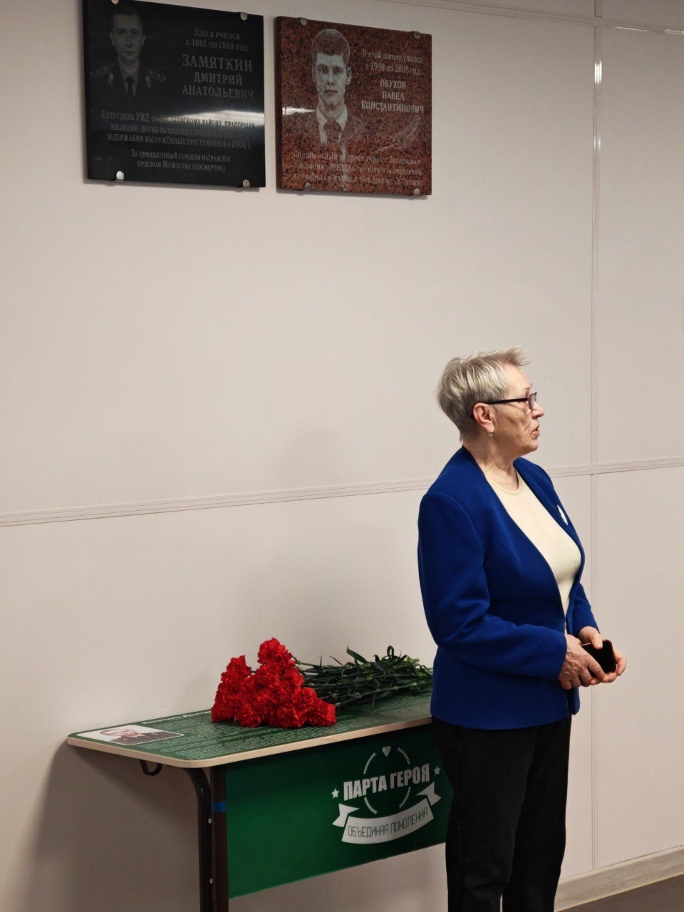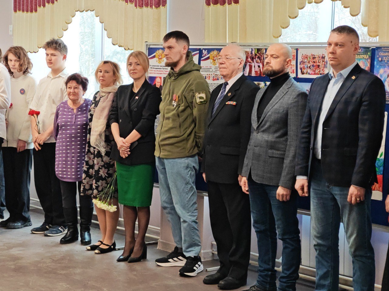 Почтить память Дмитрия Анатольевича и возложить цветы к его памятной доске пришли почетные гости Председатель Совета депутатов Мария Тарасова, участники СВО, ветераны и сотрудники МВД, представители общественных организаций и духовенства, педагоги и ученики и конечно мама героя Галина Замяткина.