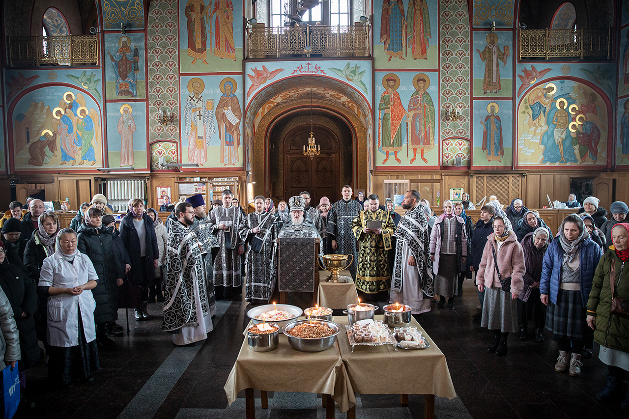 По окончании Литургии отец Андрей совершил молебен святому великомученику Феодору Тирону и освятил коливо, которое потом раздали всем молящимся.