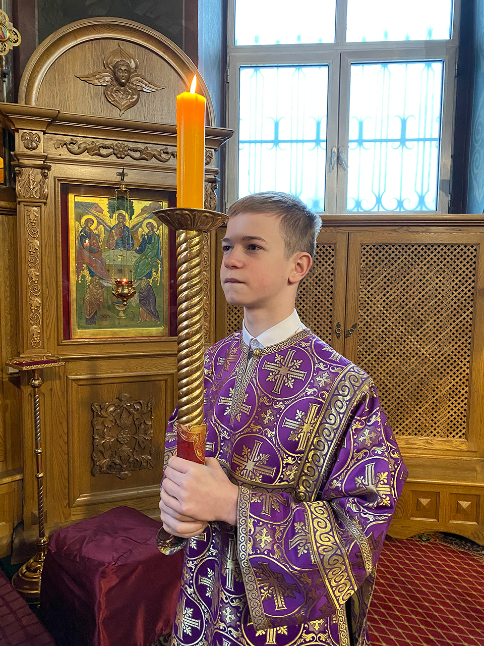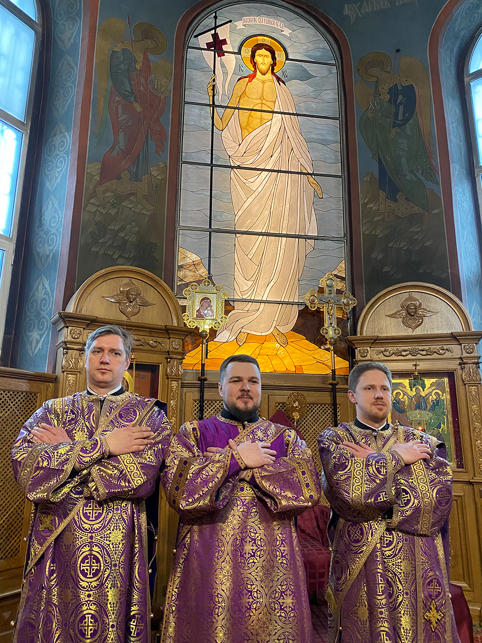 После Божественной литургии было совершено праздничное славление, после которого отец Андрей обратился к священнослужителям и прихожанам храма со словами поздравления.