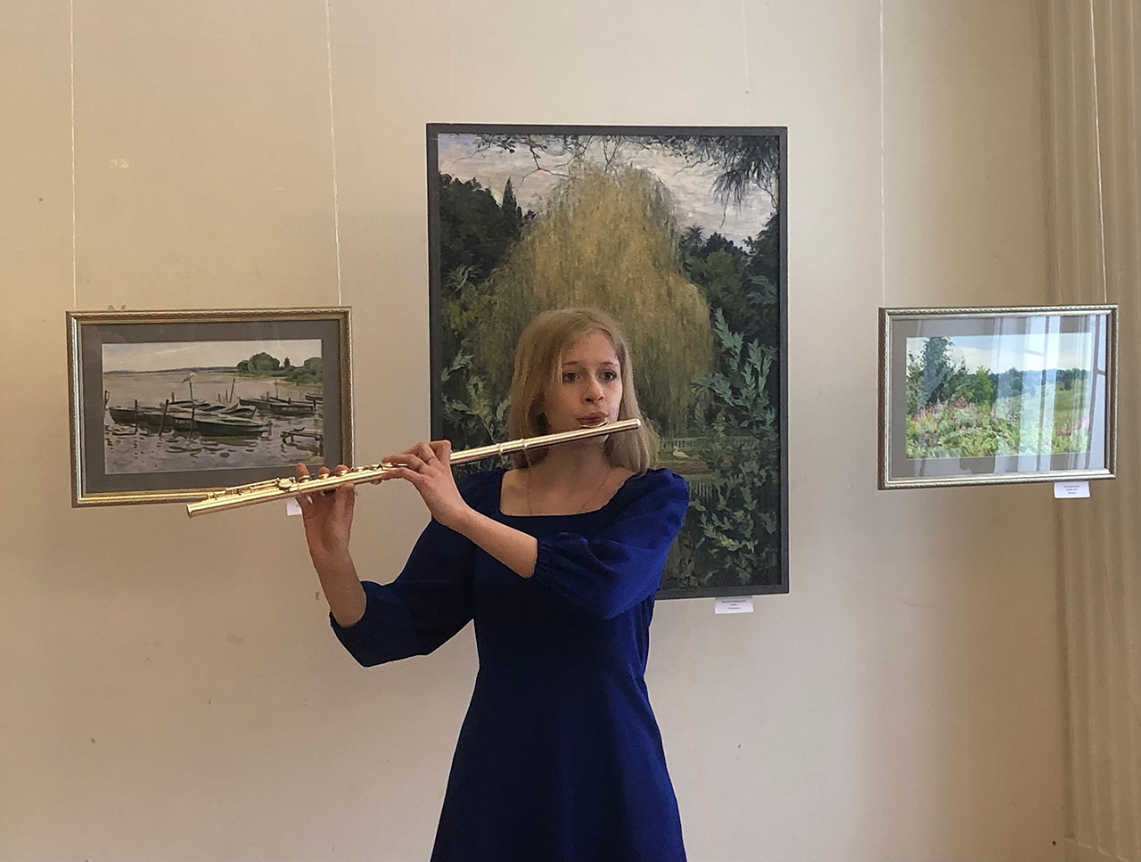С музыкальным дивертисментом выступили ученица Фрязинской детской школы искусств Полина Коротаева (флейта, преподаватель Александра Живова), и концертмейстер Татьяна Обрезан.