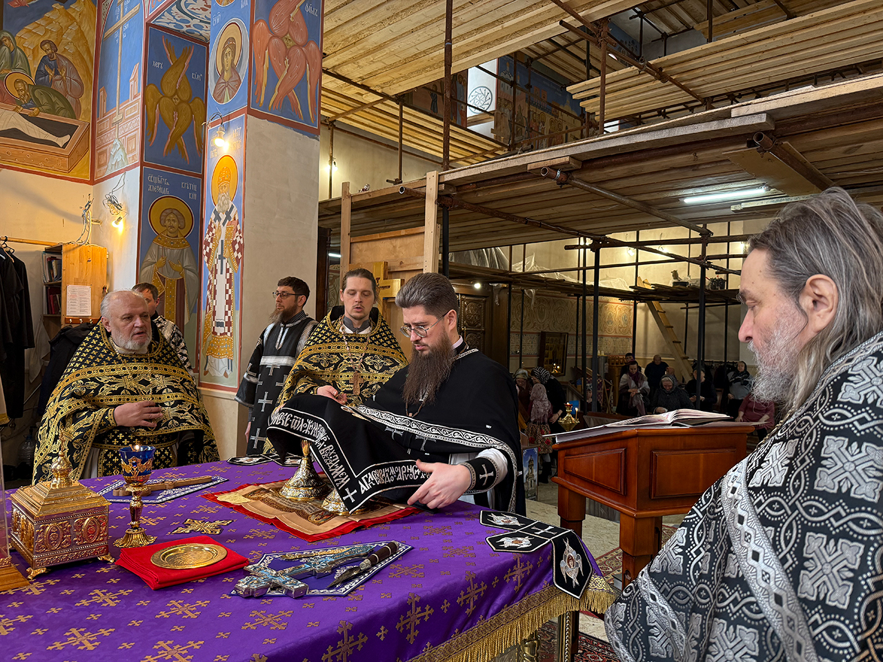 25 февраля, в среду первой седмицы Великого поста, в храме была совершена первая в этом году Литургия Преждеосвященных Даров. Соборное служение возглавил настоятель храма священник Димитрий Третьяков в сослужении клириков.