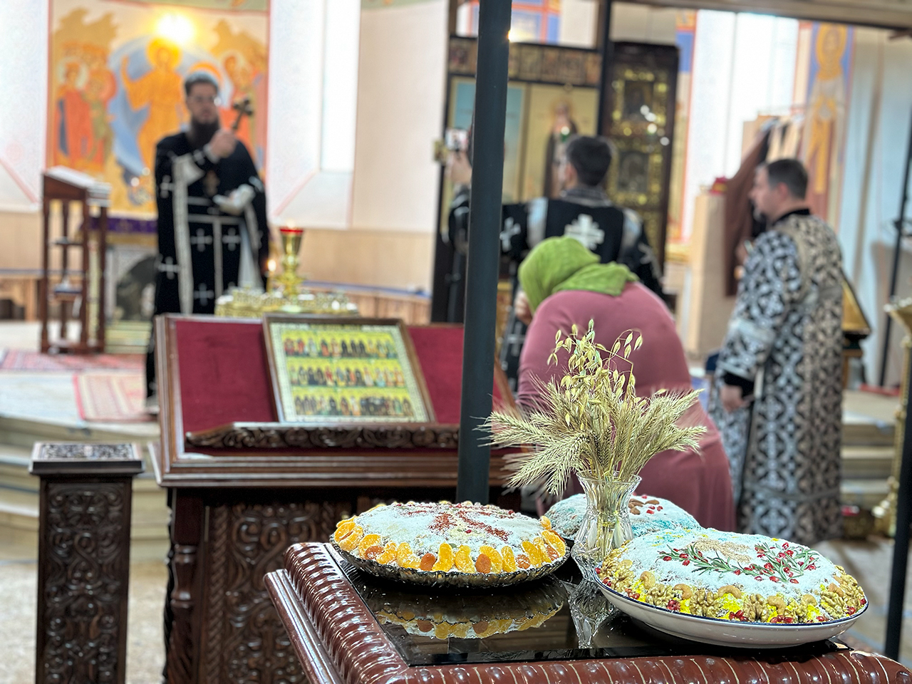 После Литургии был прочитан канон святому великомученику Феодору Тирону и совершён Чин благословения колива.