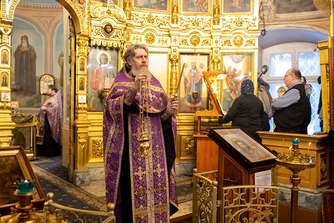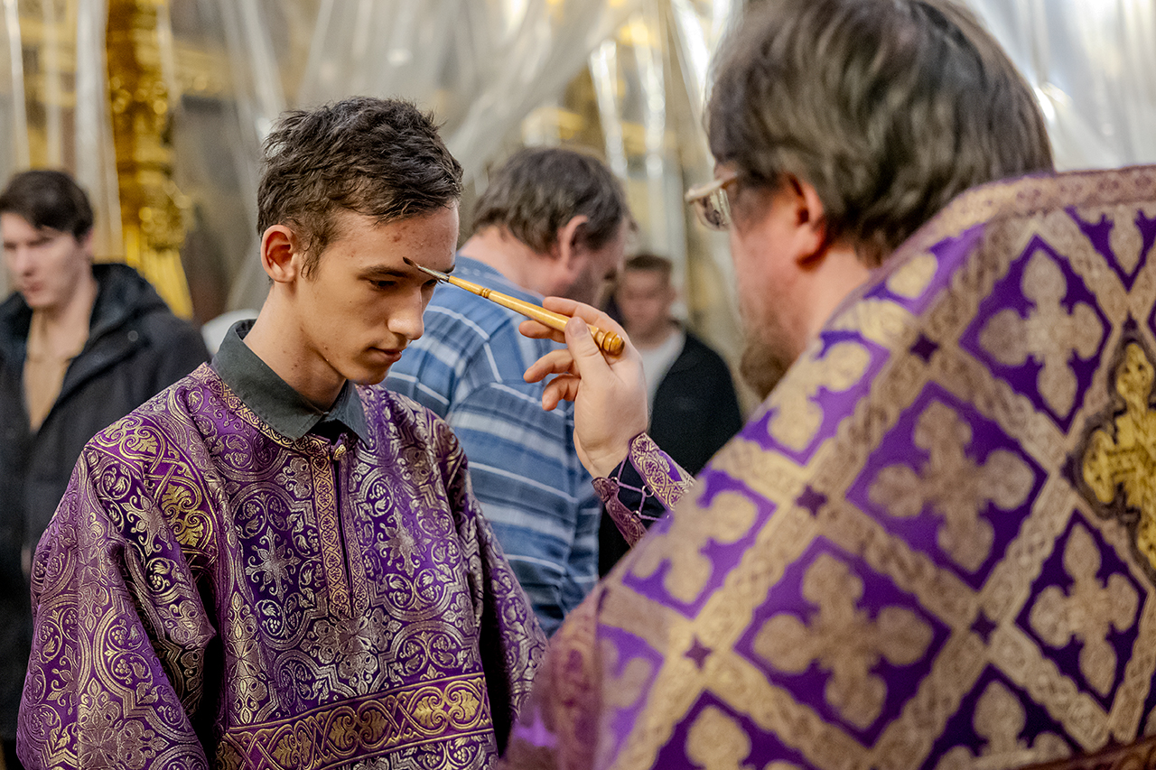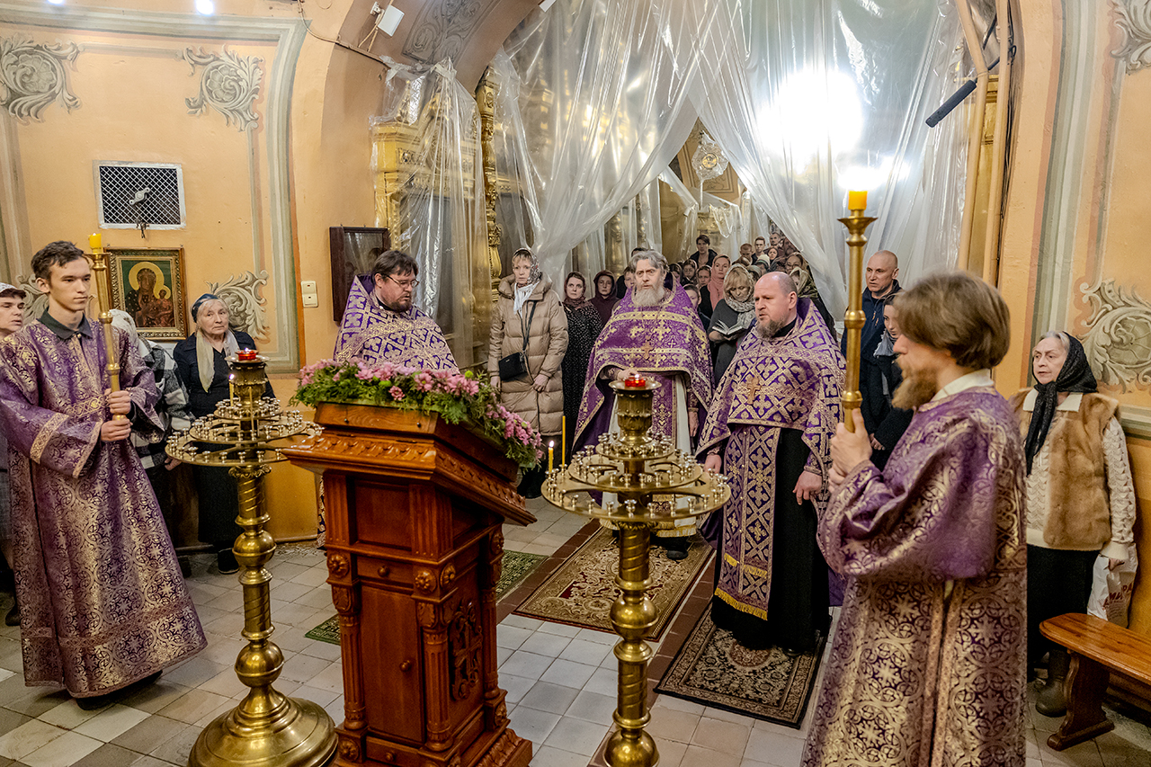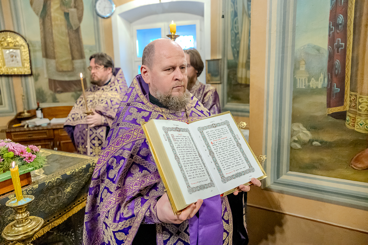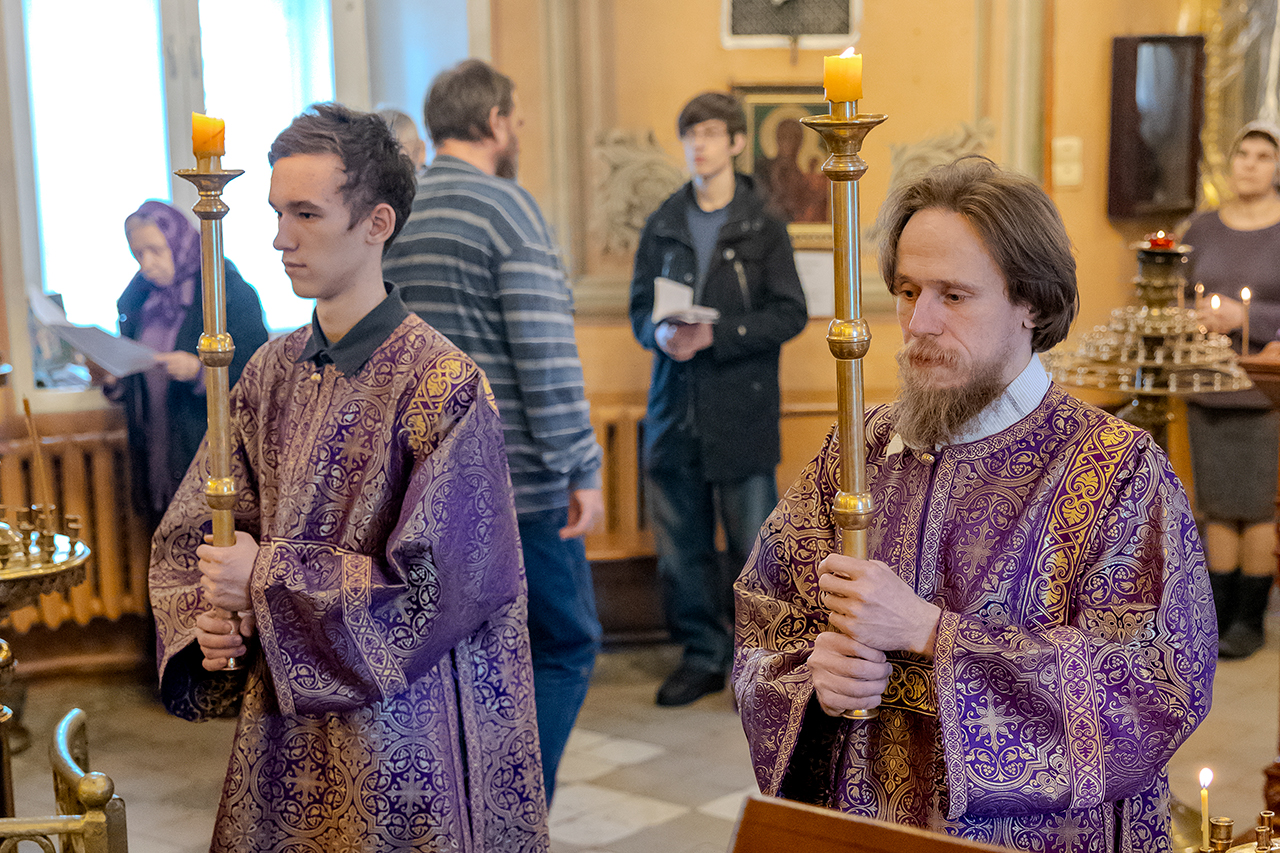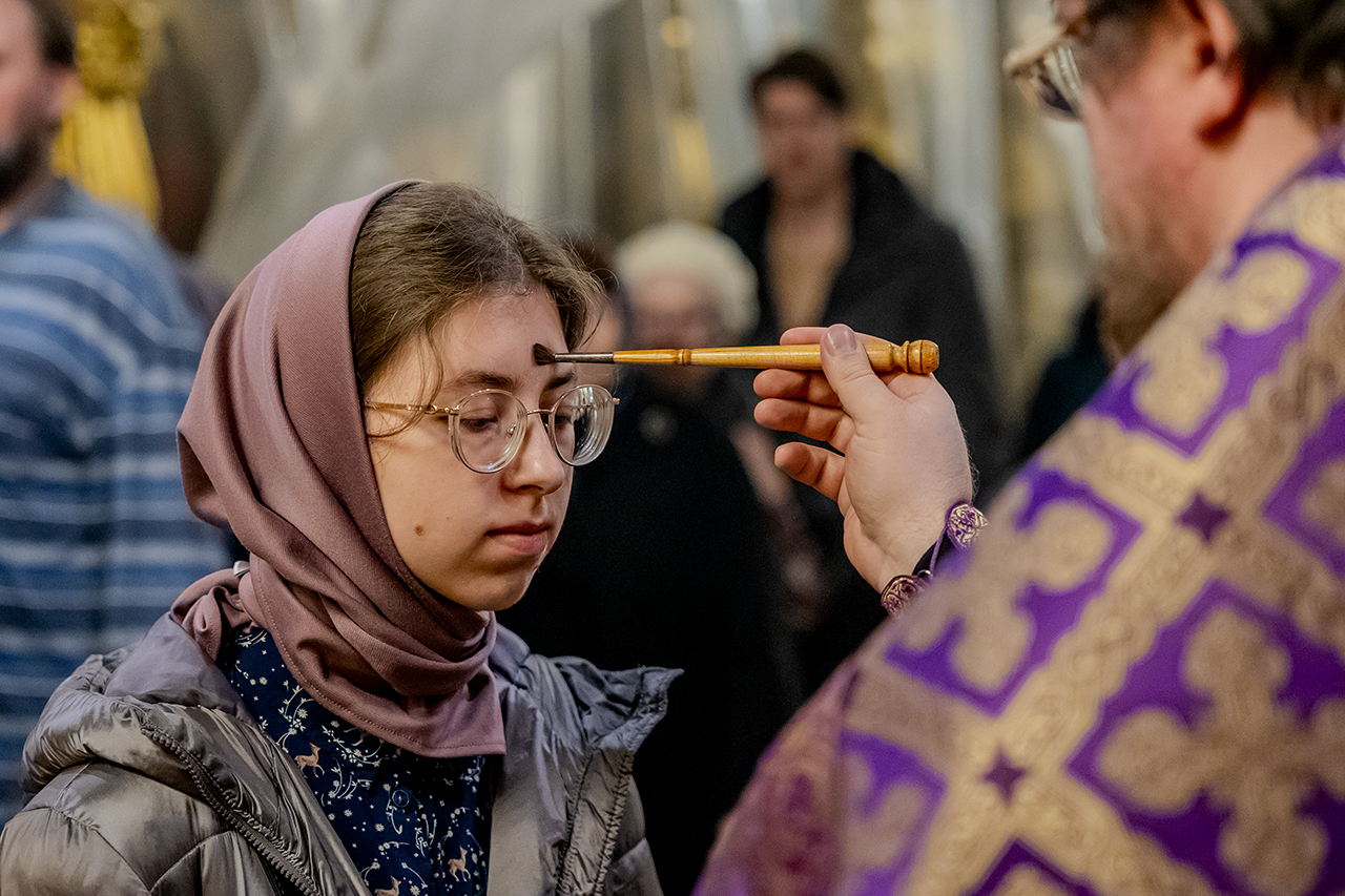 После великого славословия Крест Господень был торжественно изнесен из алтаря в центр храма под пение «Кресту Твоему покланяемся, Владыко, и Святое Воскресение Твое славим». Молящиеся в храме приложились ко Кресту, всех помазали освященным елеем.