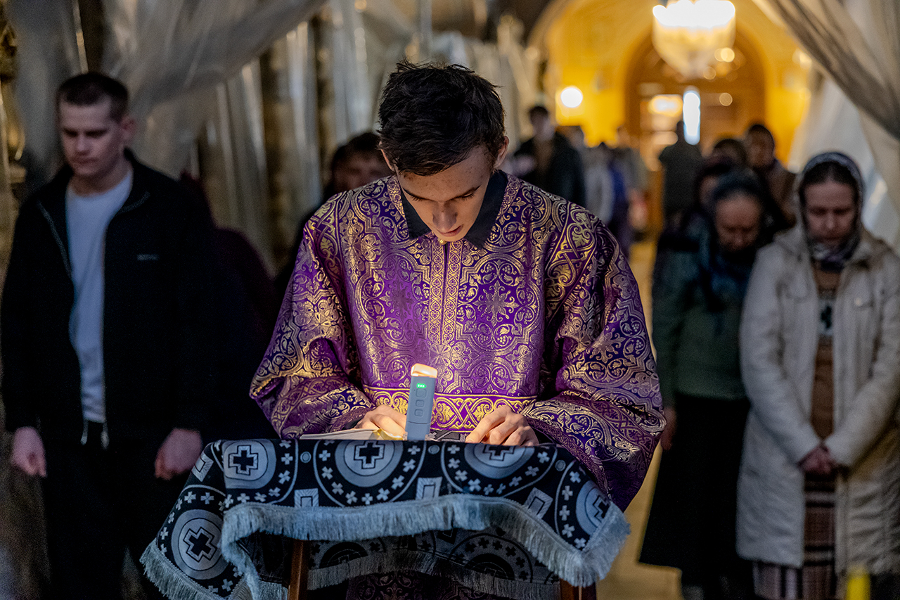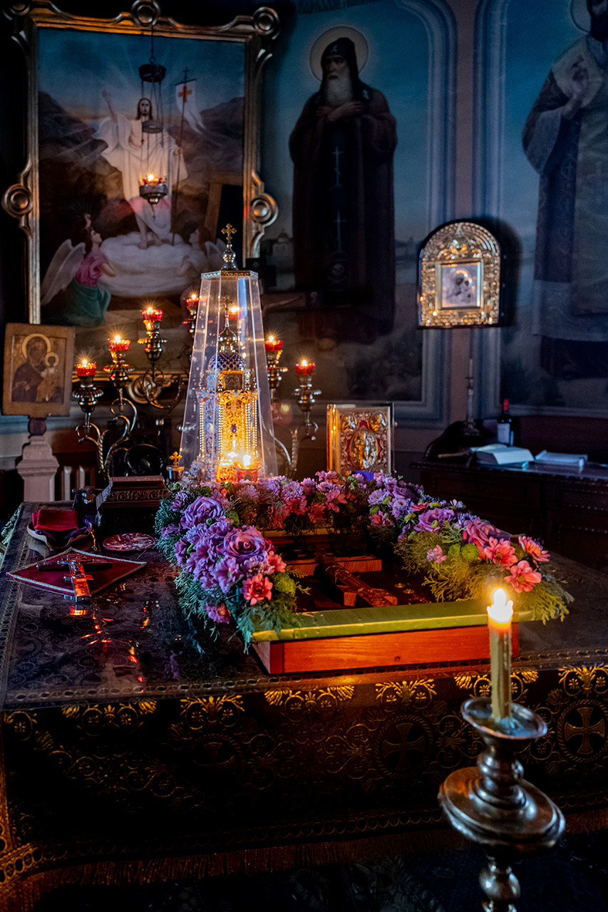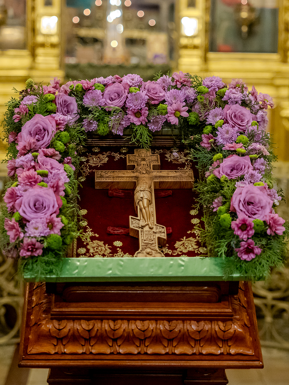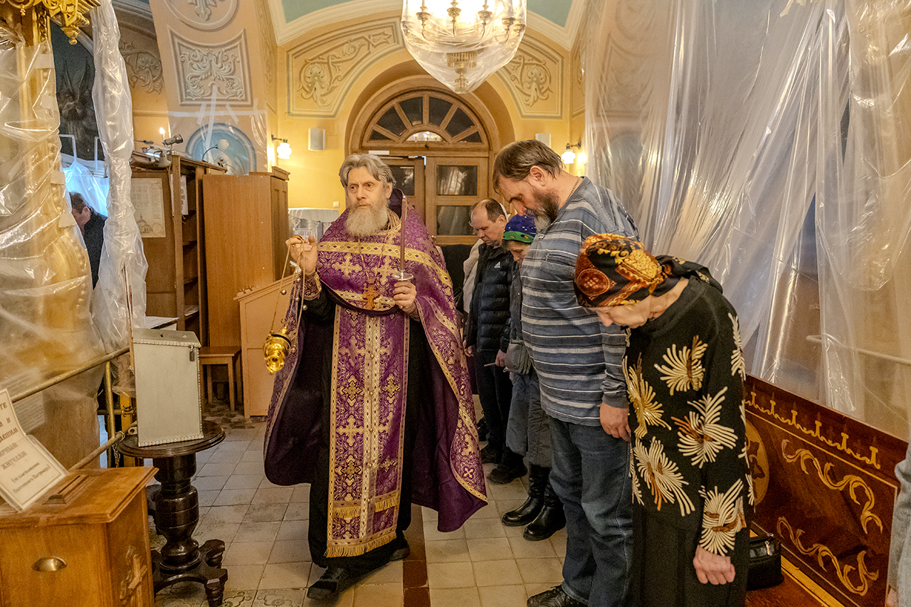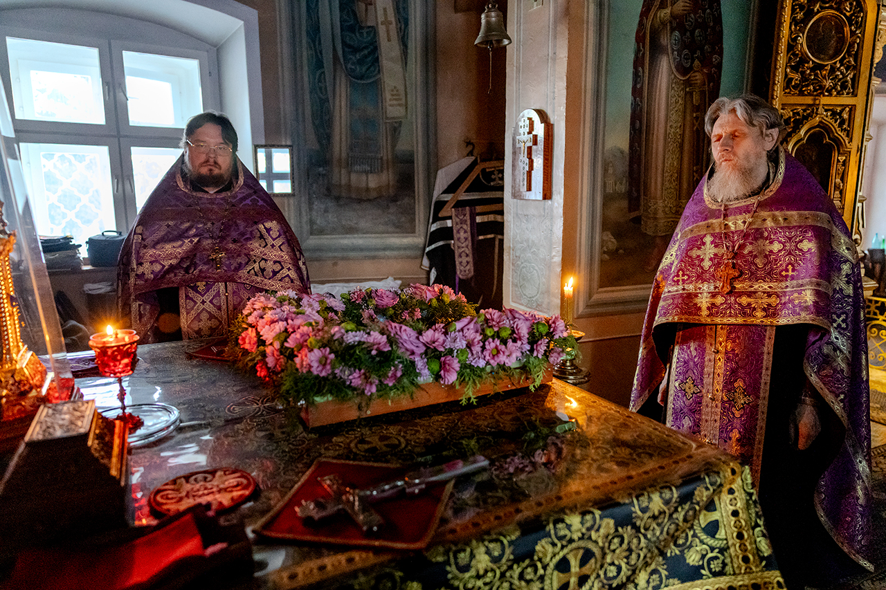 После великого славословия Крест Господень был торжественно изнесен из алтаря в центр храма под пение «Кресту Твоему покланяемся, Владыко, и Святое Воскресение Твое славим». Молящиеся в храме приложились ко Кресту, всех помазали освященным елеем.