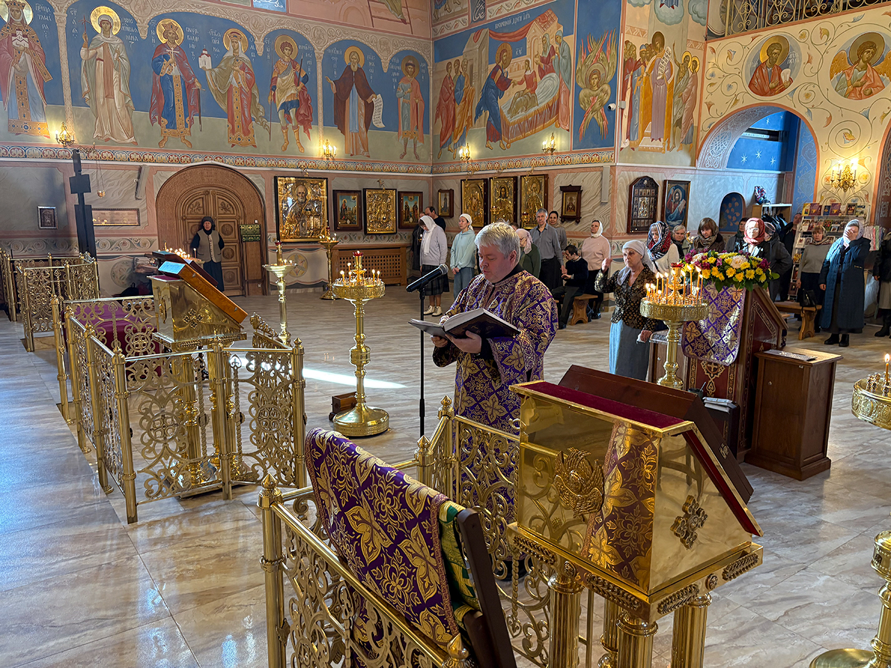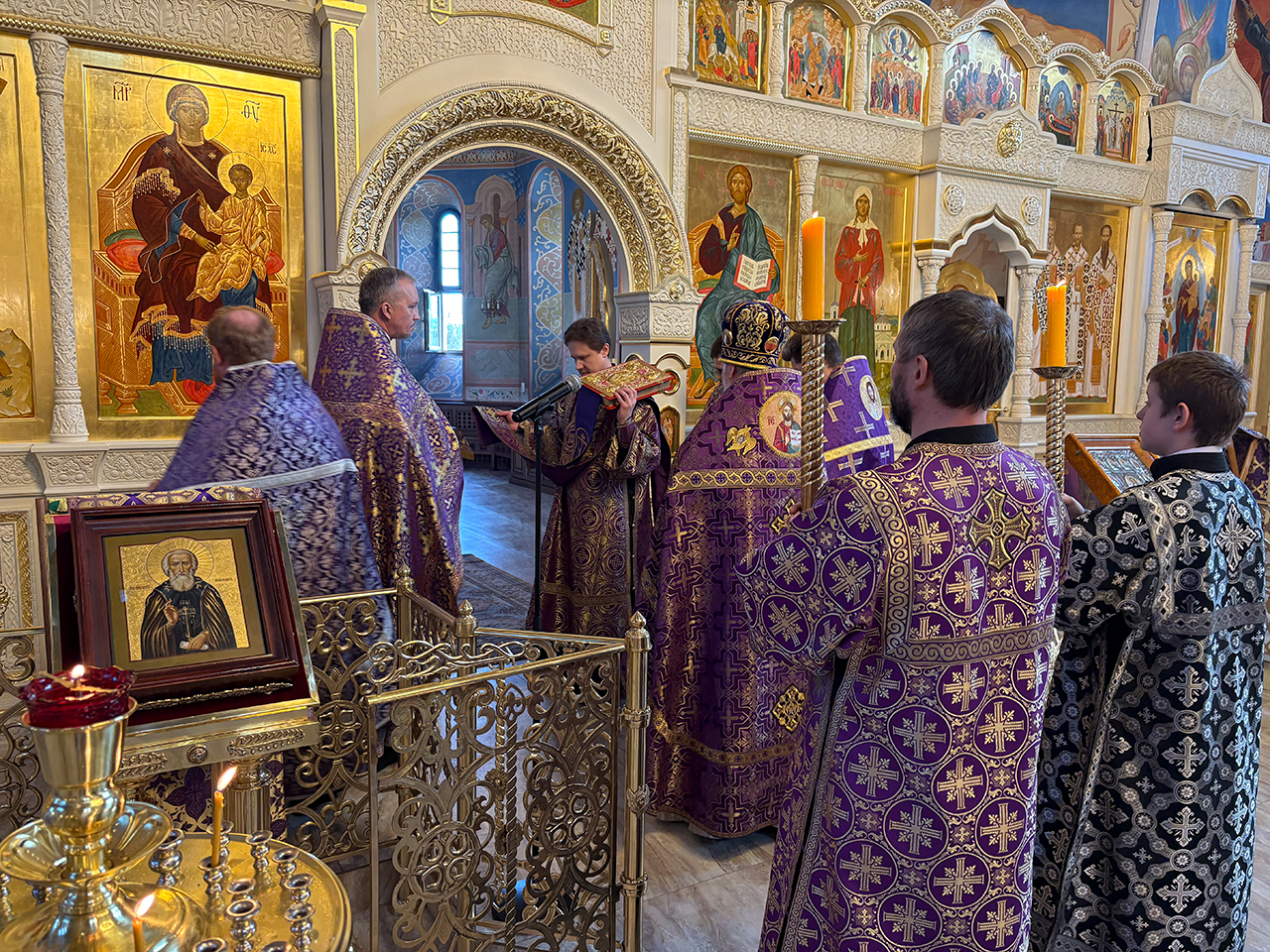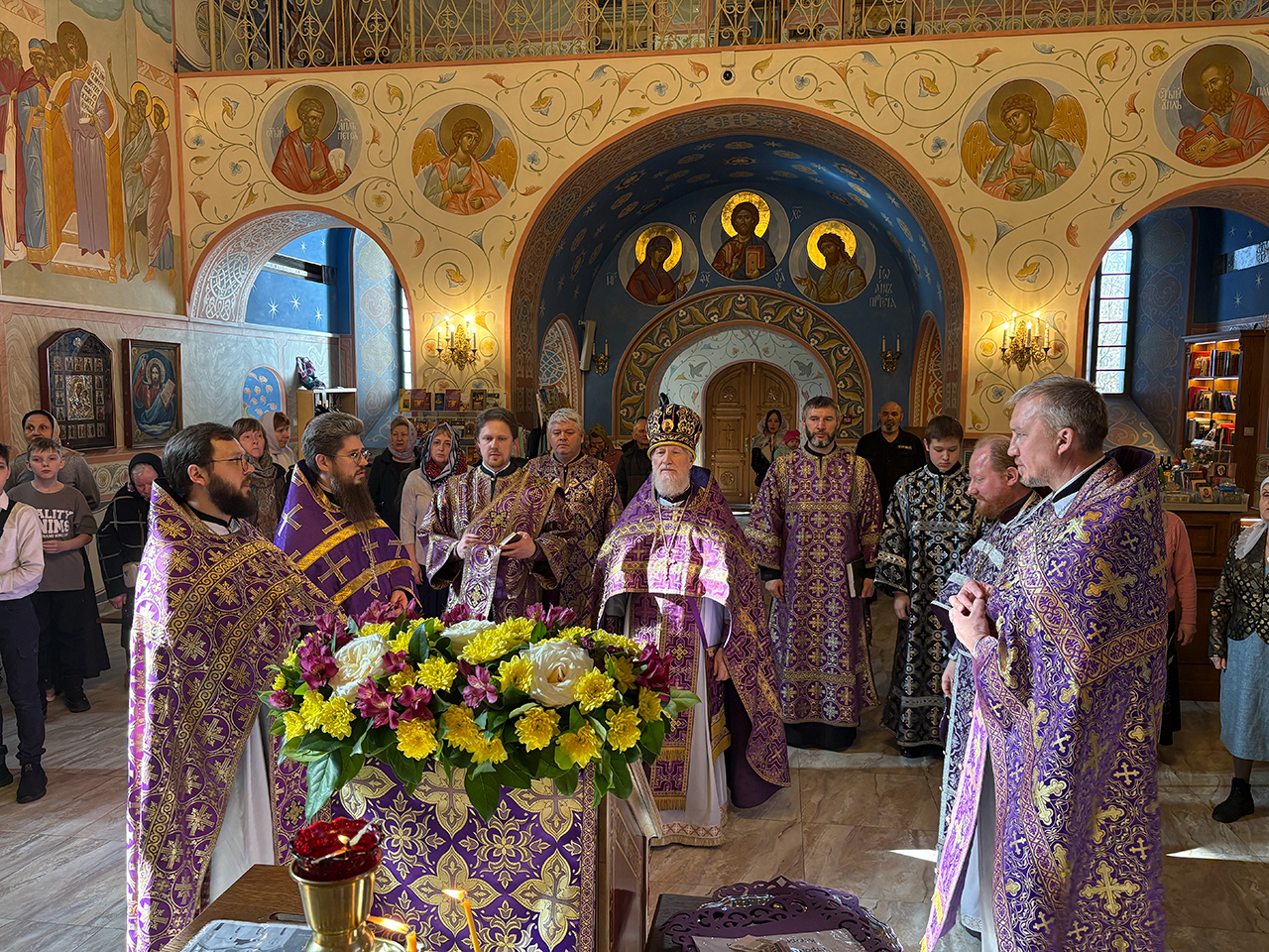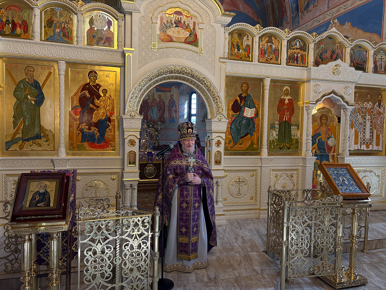 После Божественной Литургии было совершено праздничное славление, после которого отец Андрей обратился к священнослужителям и прихожанам со словами поздравления с престольным праздником.