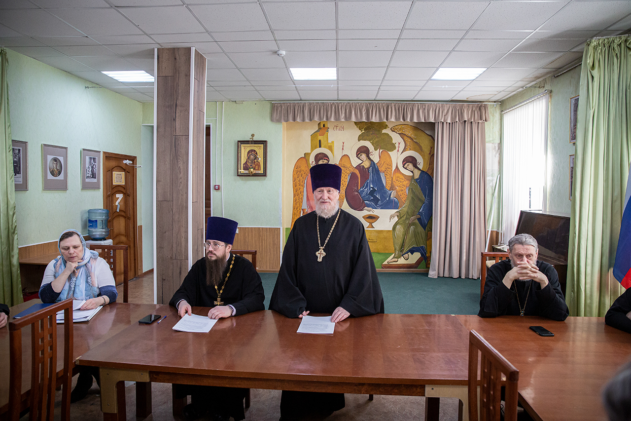 В ходе совещания также выступили помощники благочинного: по миссионерскому служению священник Димитрий Третьяков; по взаимодействию с Вооруженными силами и правоохранительными учреждениями священник Димитрий Выдумкин; по работе с молодежью священник Александр Мороков; по реставрации и строительству священник Иоанн Коваленко.