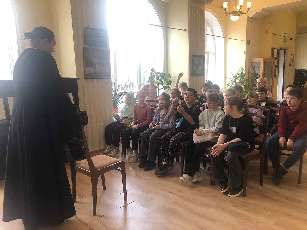 Отец Владимир рассказал об истории и значении праздника Пасхи, о смысле подготовки к празднику, духовной дисциплине, умении себя ограничивать, правильных, полезных привычках, о внимании и заботе о ближних. Говорили о Великом посте – времени подготовки к празднику, о Вербном воскресении – празднике Входа Господня в Иерусалим.