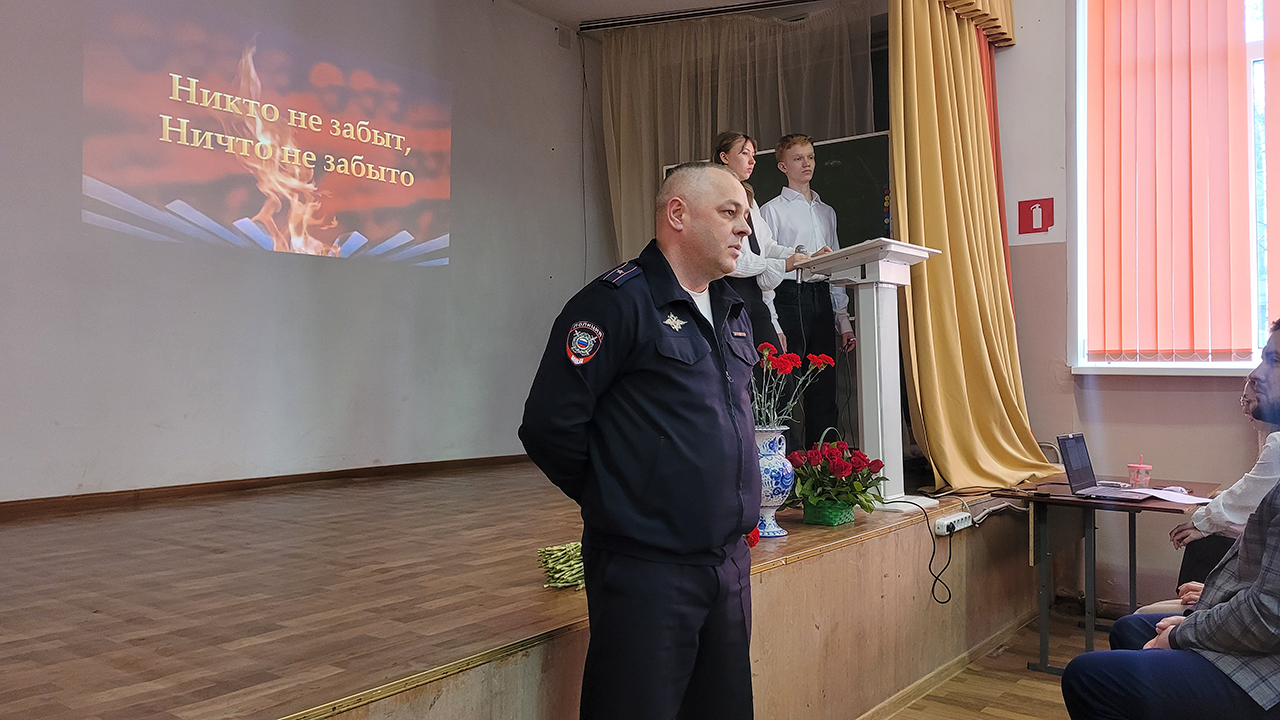 На торжественной линейке к учащимся обратились председатель Совета ветеранов межмуниципального управления Министерства внутренних дел России «Щёлковское» подполковник милиции в отставке Нина Алексеевна Медведева, ответственный в Щёлковском благочинии по вопросам семьи, защиты материнства и детства священник Димитрий Медведев, представители МВД и ветеранских организаций.