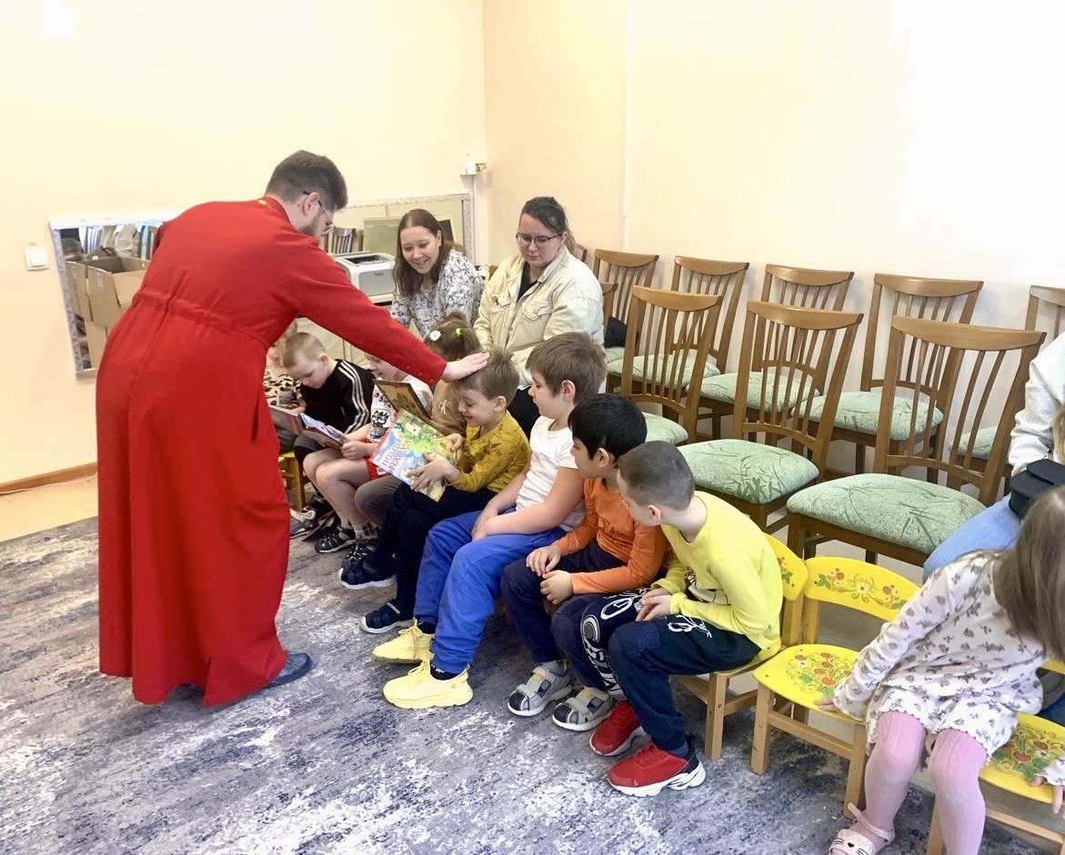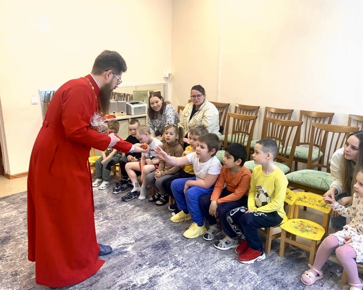 Батюшка не просто поздравил малышей, а превратил беседу в увлекательное путешествие в мир православных традиций. Дети узнали почему на Пасху принято красить яйца и печь куличи, какой глубокий смысл скрыт за радостным приветствием «Христос Воскресе!».