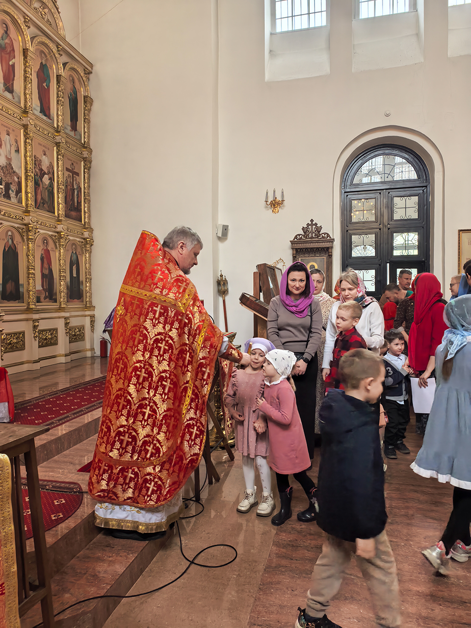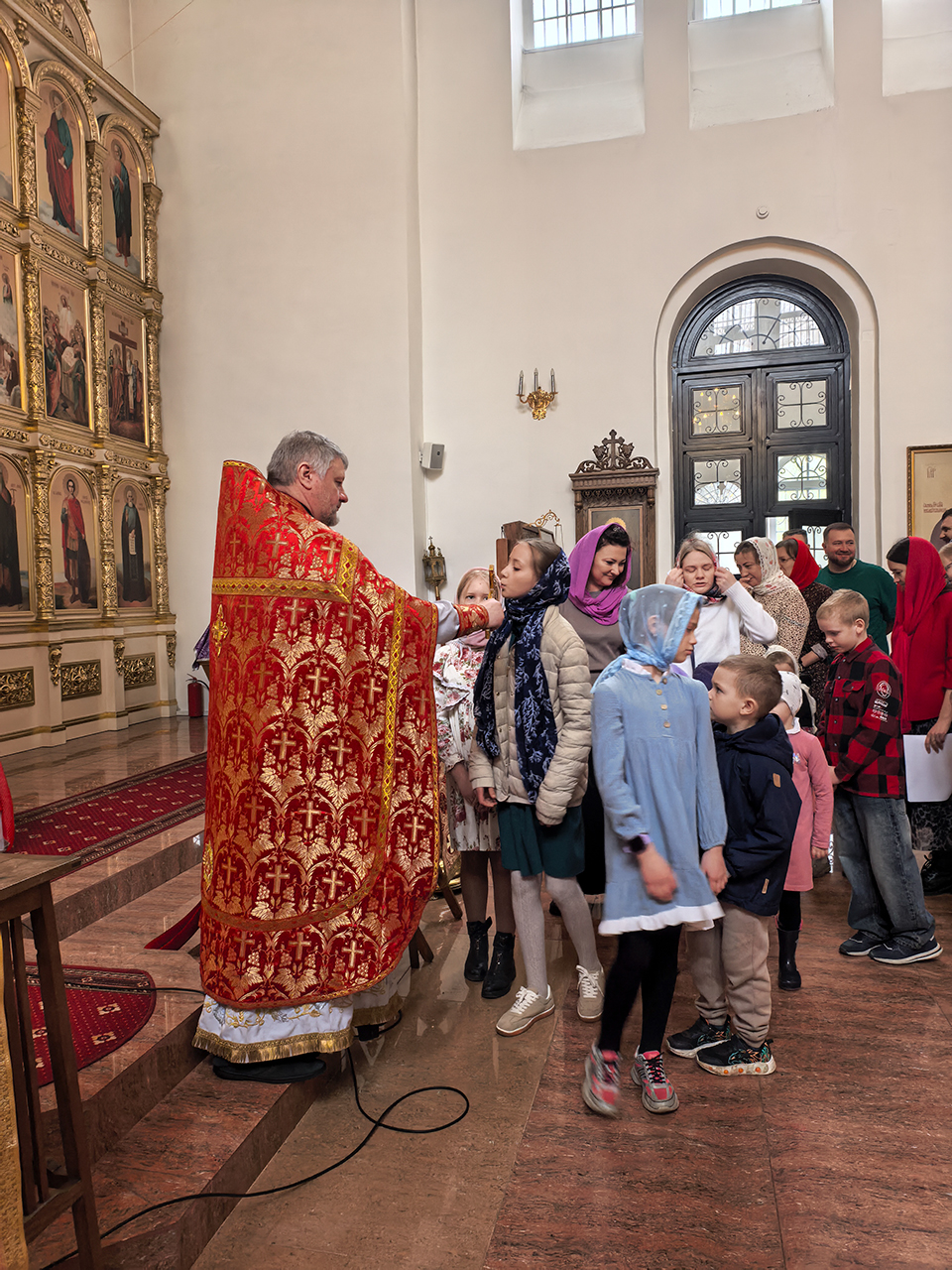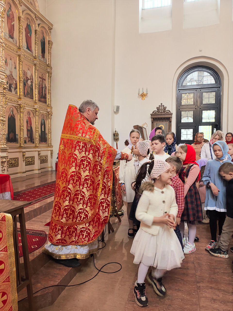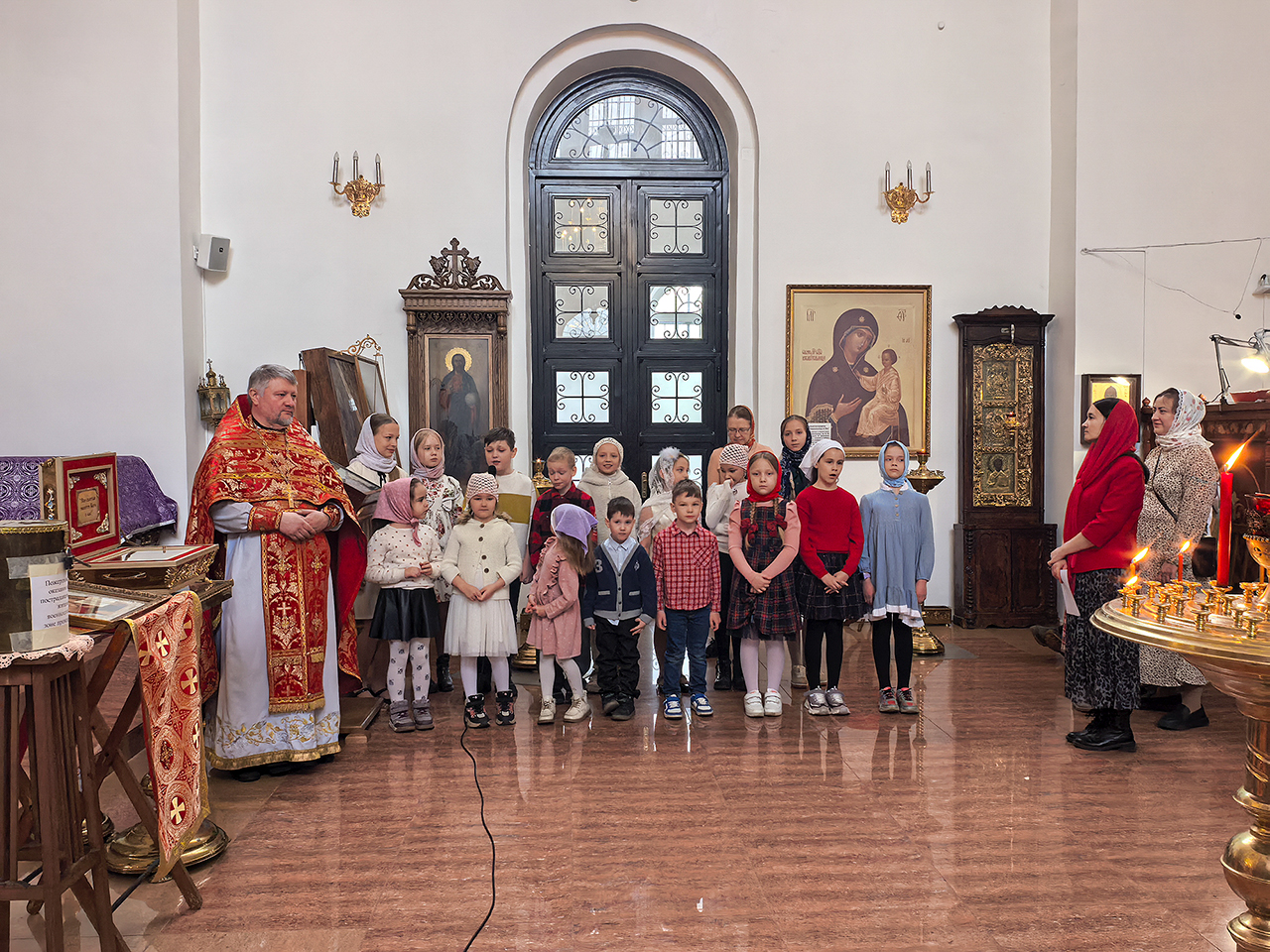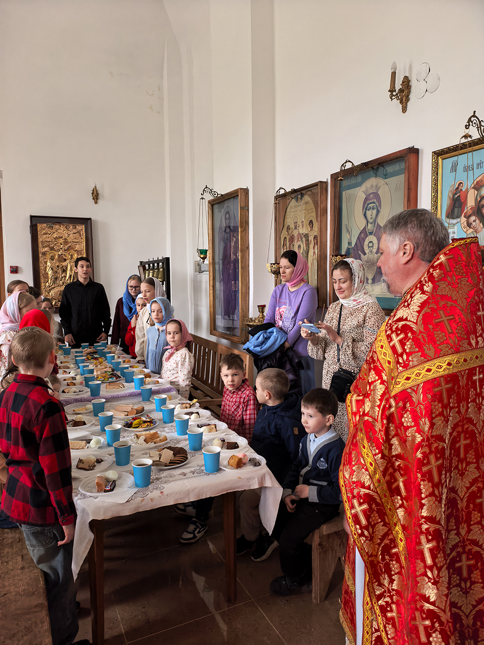 Воспитанники приходской воскресной школы исполнили праздничный пасхальный тропарь, прославили Воскресшего Христа в песнях и стихотворениях. После выступления детей состоялось чаепитие, и все желающие могли позвонить в колокола по пасхальной традиции.