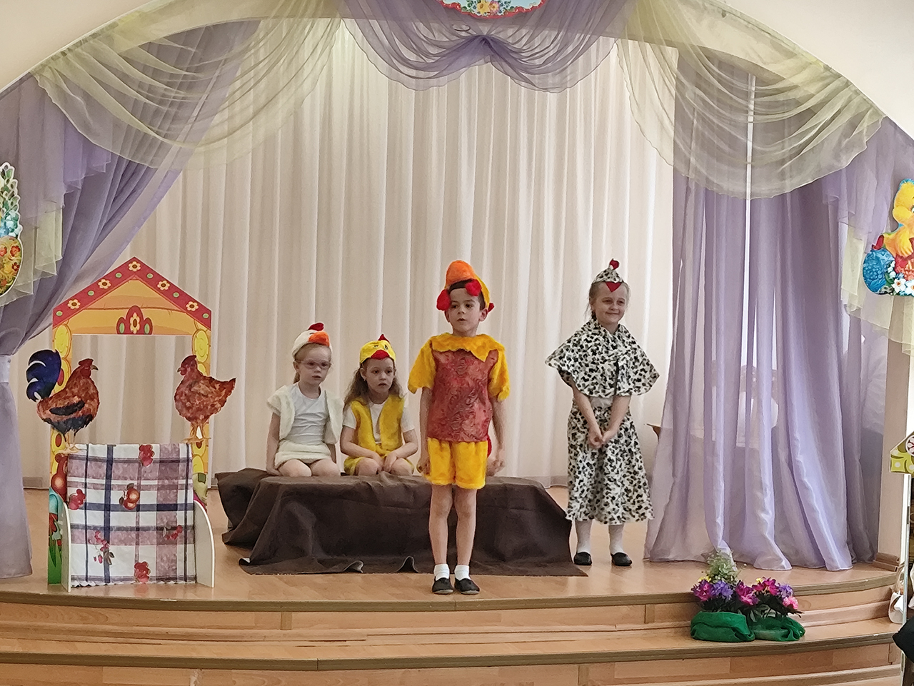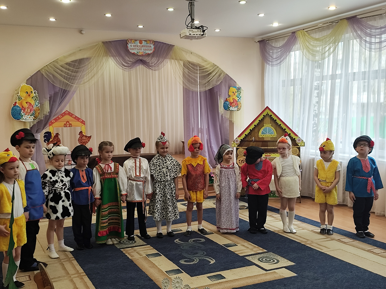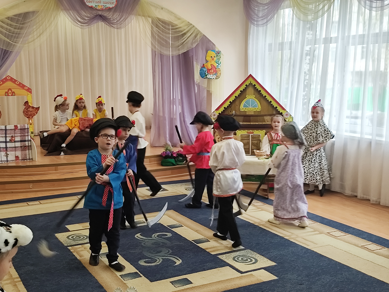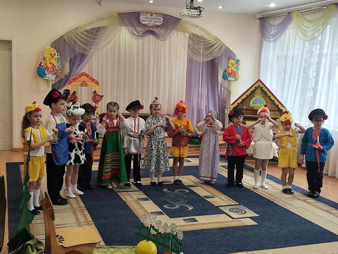 20 апреля в детском саду №18 «Росинка» города Щёлково прошло радостное пасхальное мероприятие. Воспитанники разновозрастной группы «Журавлик» показали для гостей и сверстников пасхальную сказку «Петушок и бобовое зёрнышко».