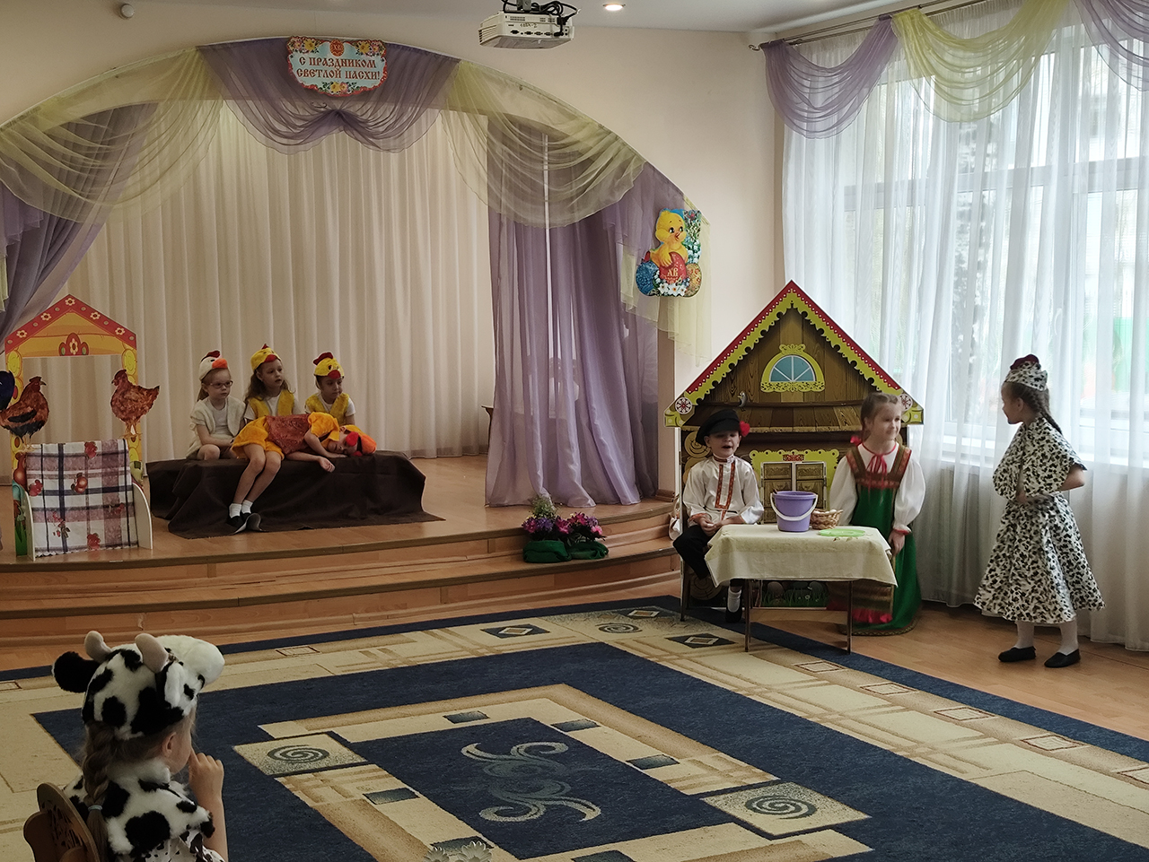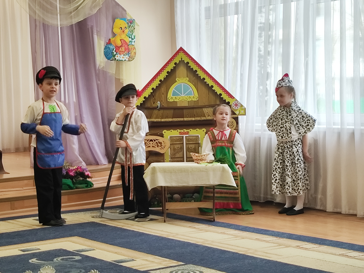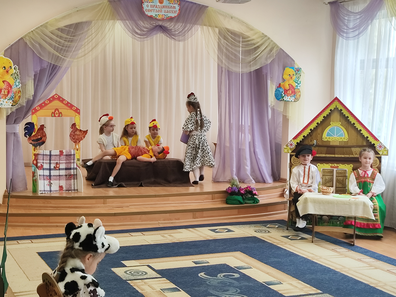 20 апреля в детском саду №18 «Росинка» города Щёлково прошло радостное пасхальное мероприятие. Воспитанники разновозрастной группы «Журавлик» показали для гостей и сверстников пасхальную сказку «Петушок и бобовое зёрнышко».