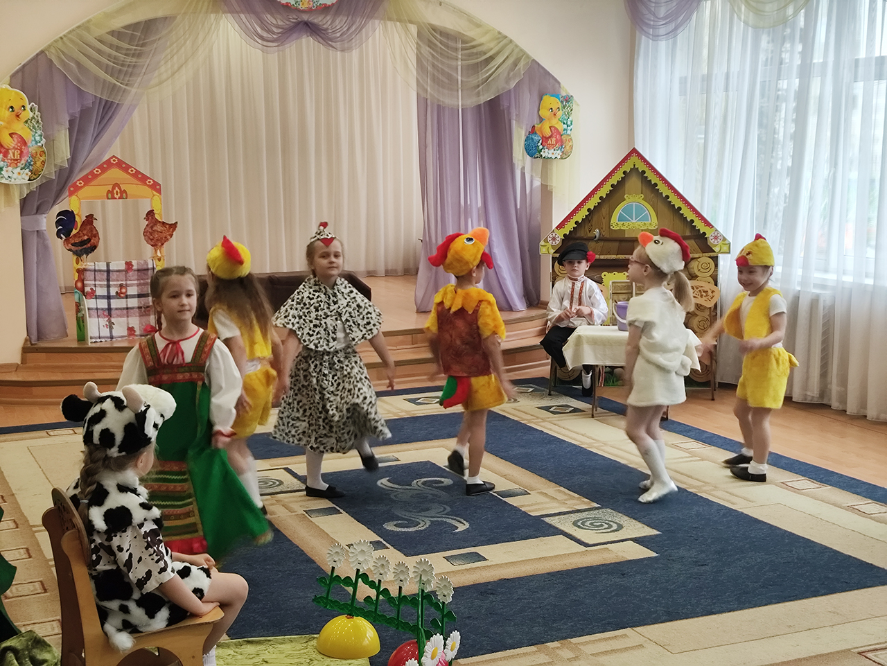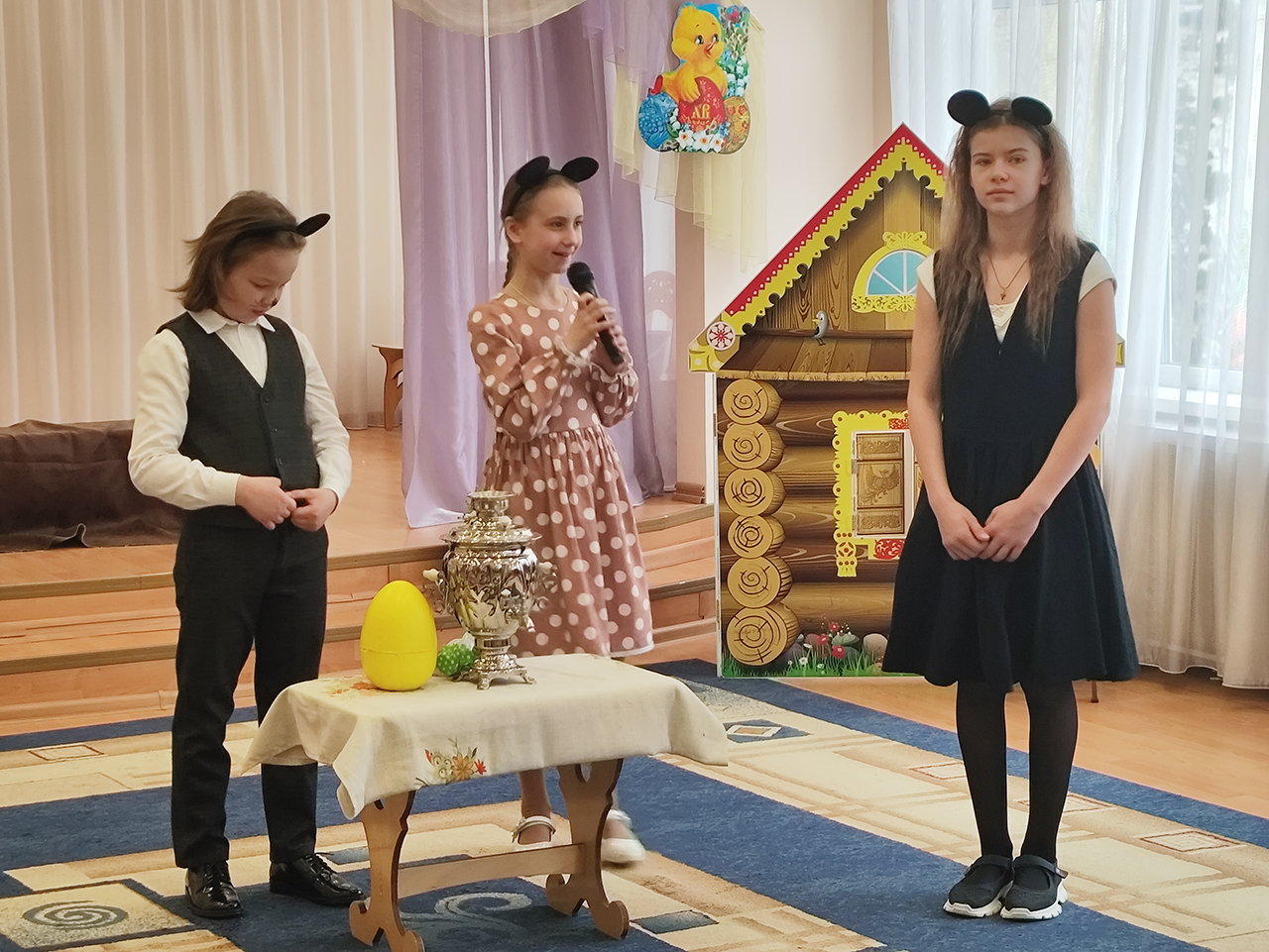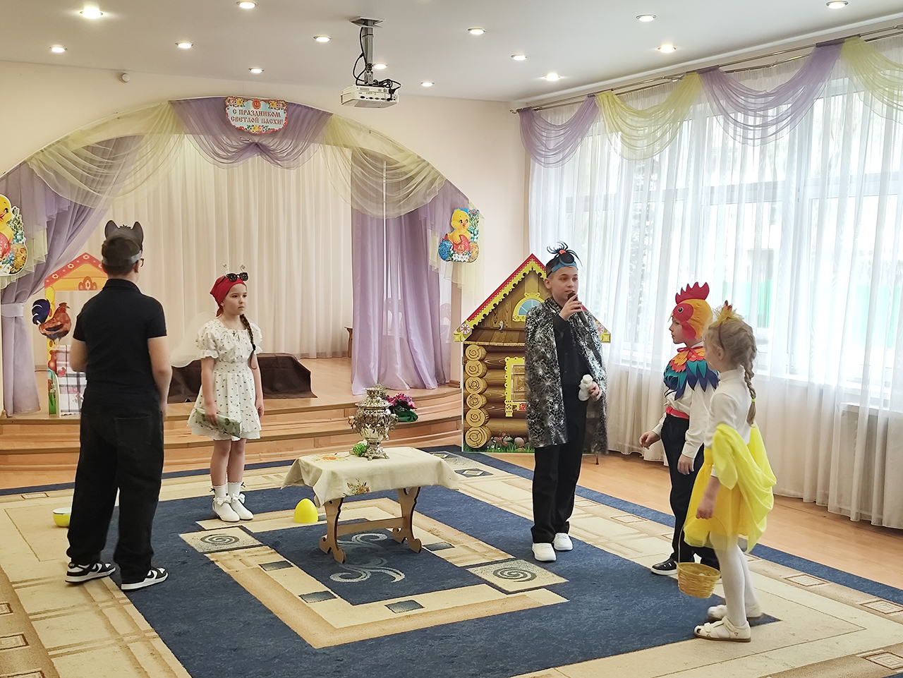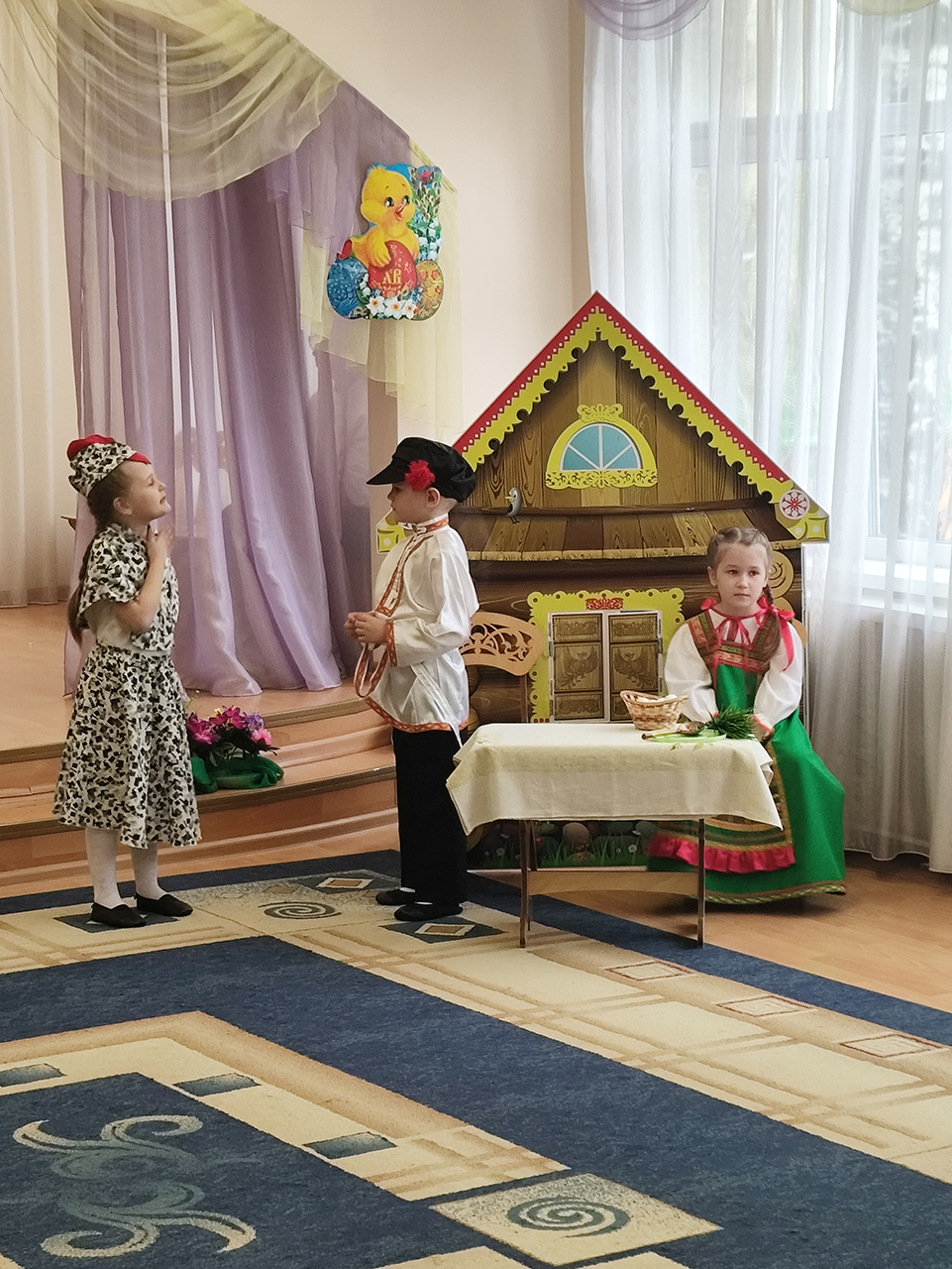20 апреля в детском саду №18 «Росинка» города Щёлково прошло радостное пасхальное мероприятие. Воспитанники разновозрастной группы «Журавлик» показали для гостей и сверстников пасхальную сказку «Петушок и бобовое зёрнышко».