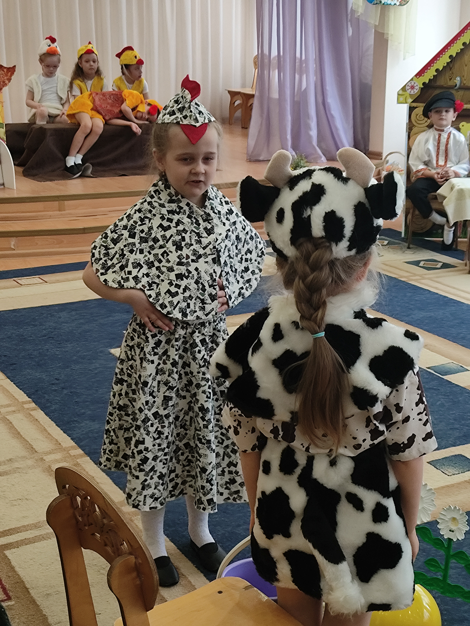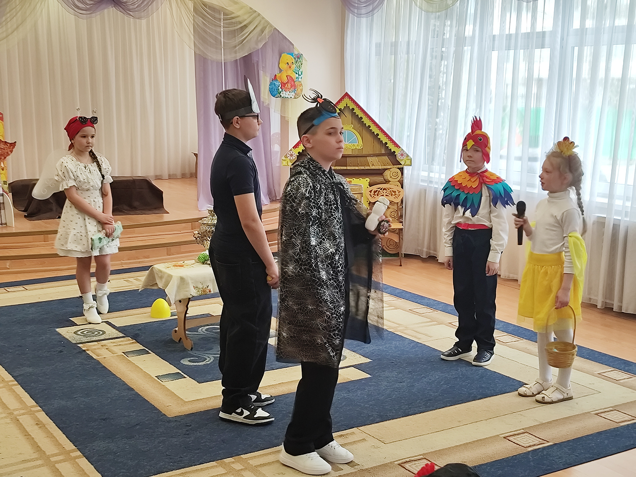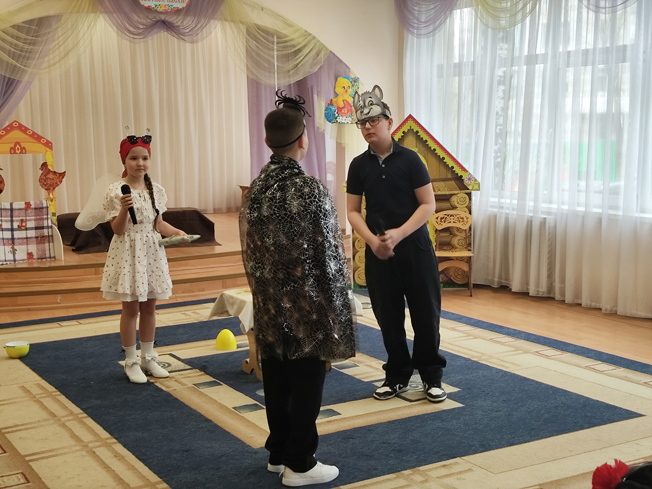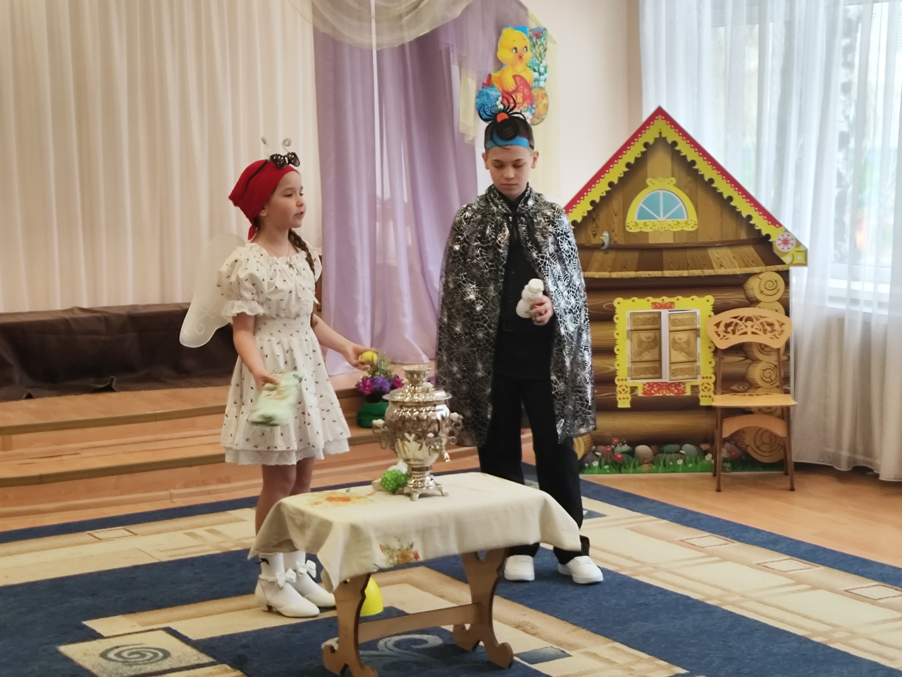 Также с ответным визитом выступили обучающиеся воскресной школы Серафимовского храма города Щёлково, которые подарили юным зрителям постановку «Муха-цокотуха».