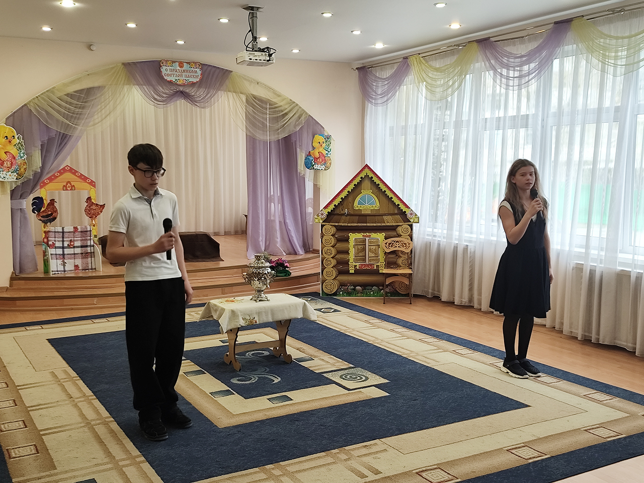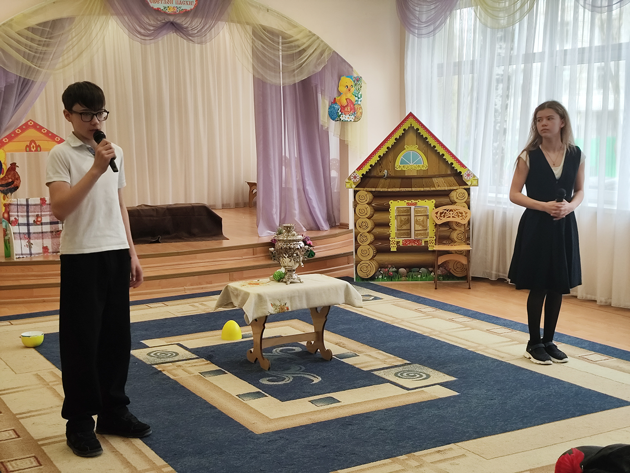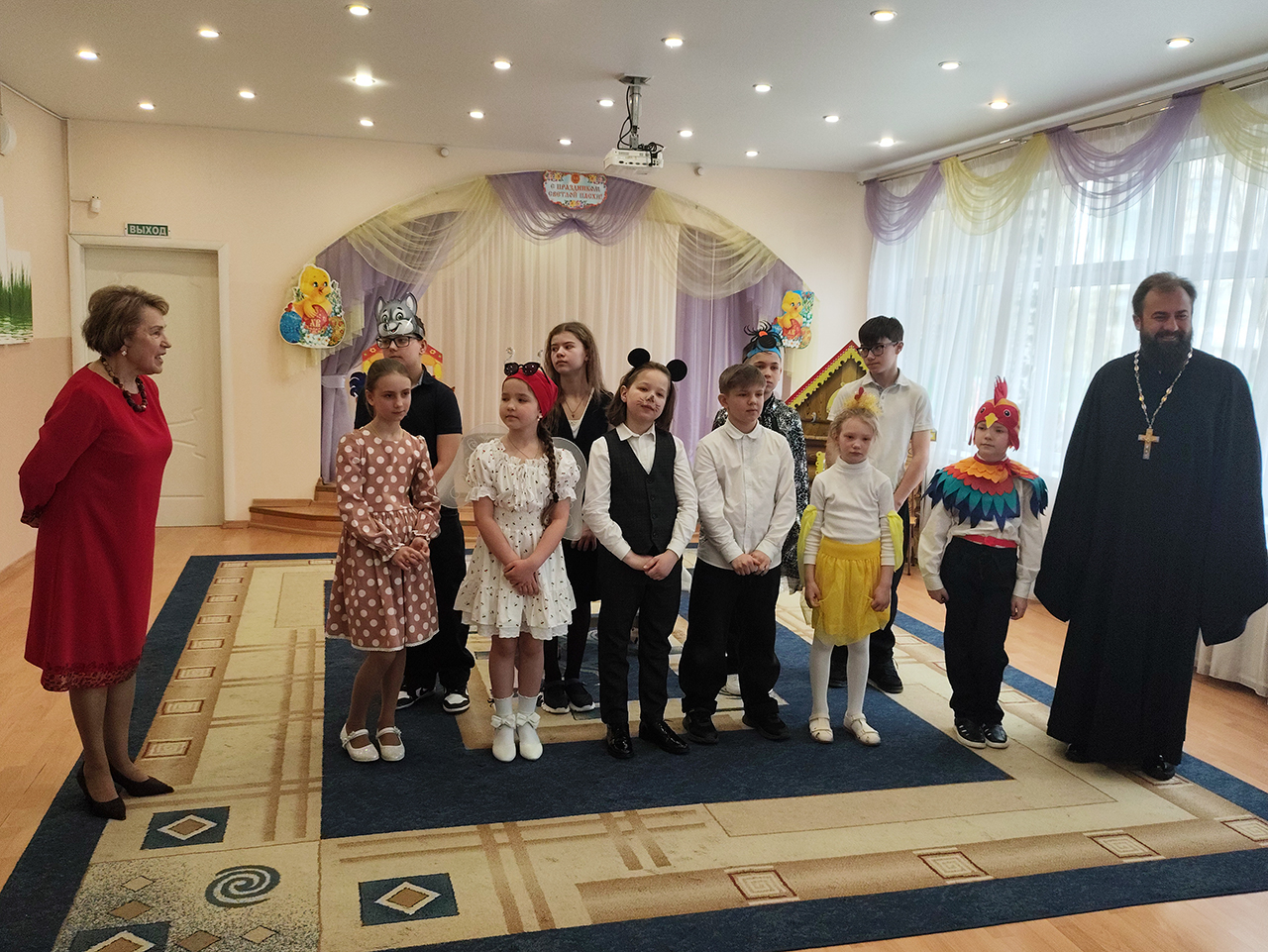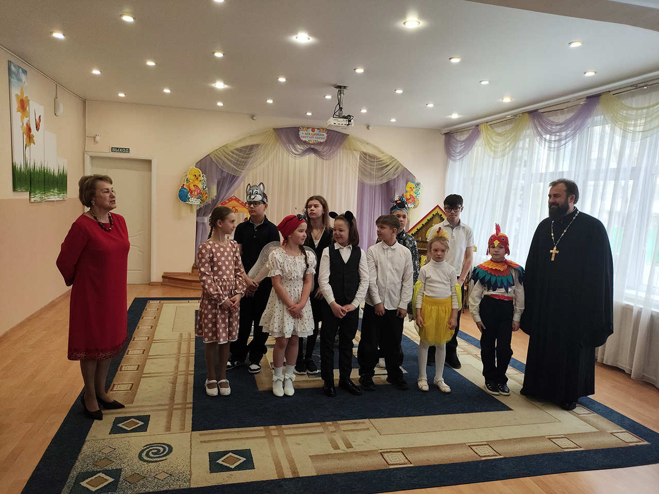 Руководитель детского сада Марина Александровна Зверева поблагодарила воспитанников и гостей за чудесные выступления. Настоятель Серафимовского храма священник Виталий Крикота и директор воскресной школы Мария Сергеевна Крикота поздравили всех присутствующих со светлым праздником Пасхи.