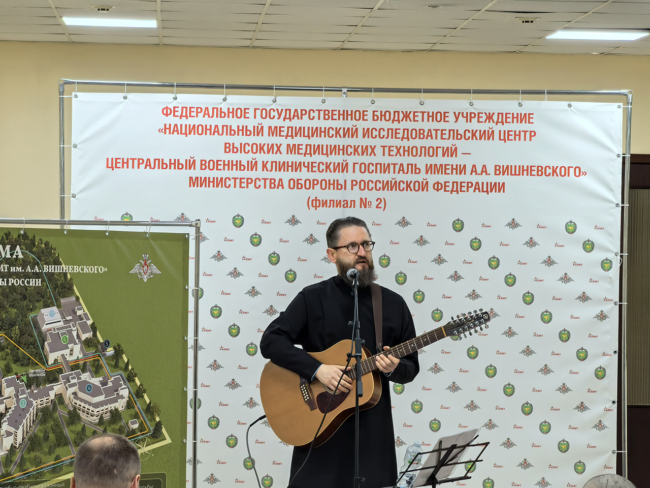 Встреча прошла в тёплой, доверительной атмосфере: автор не только пел под гитару, но и отвечал на вопросы пациентов, многие из которых находятся на длительном лечении и особенно нуждаются в духовной поддержке и живом слове утешения. Для людей, проходящих лечение в стенах госпиталя, такие миссионерские концерты становятся настоящим окном в мир веры, надежды и света.