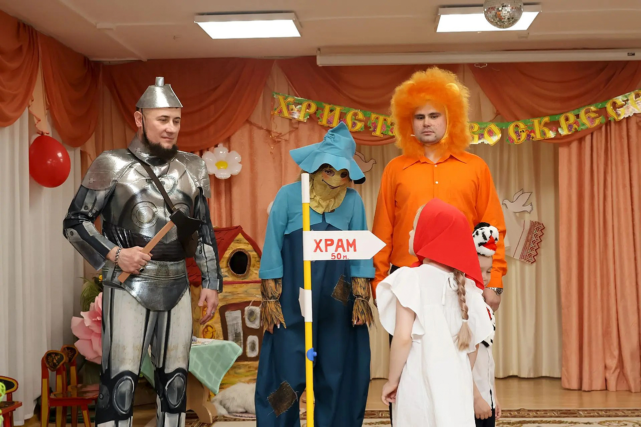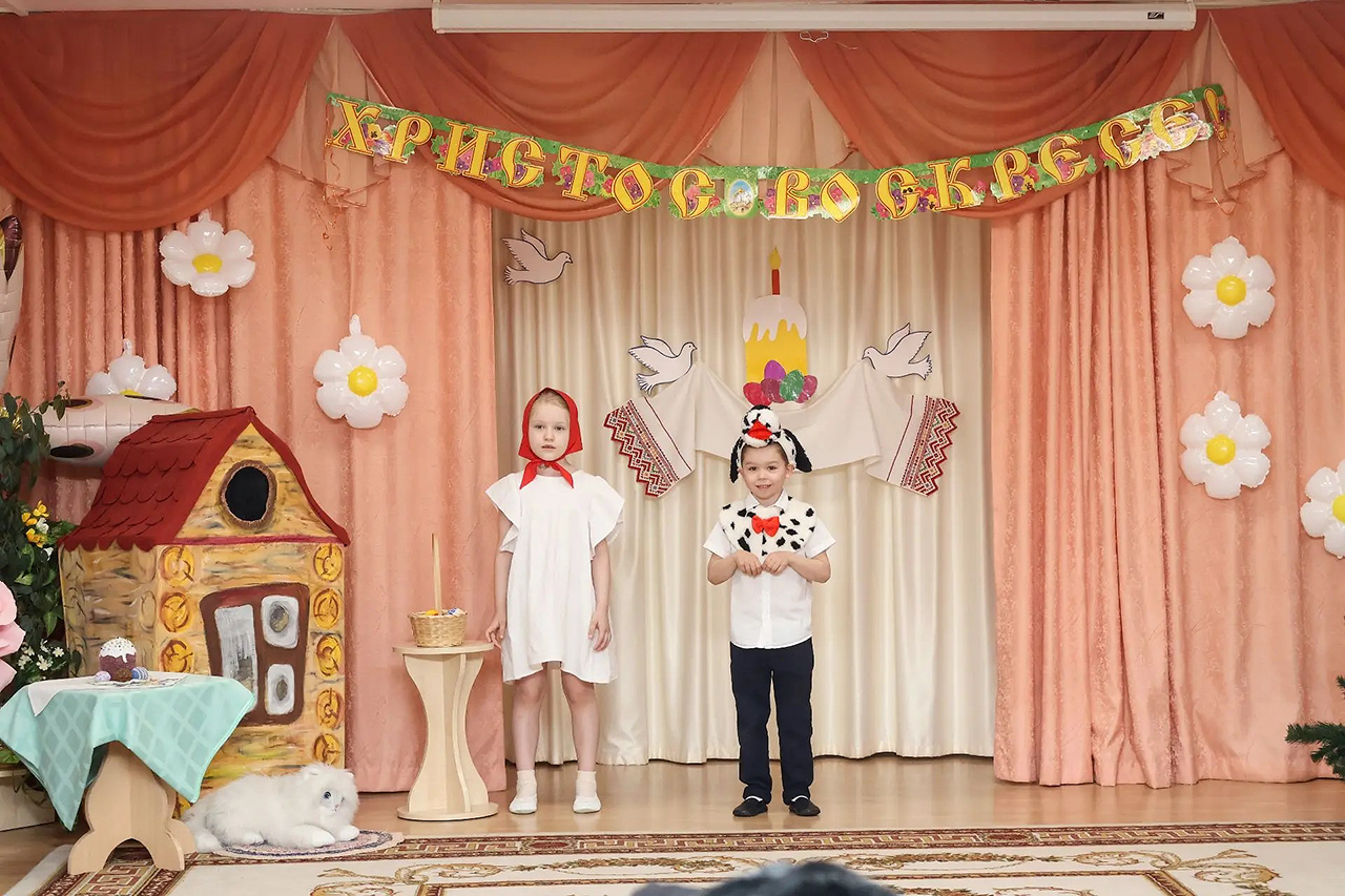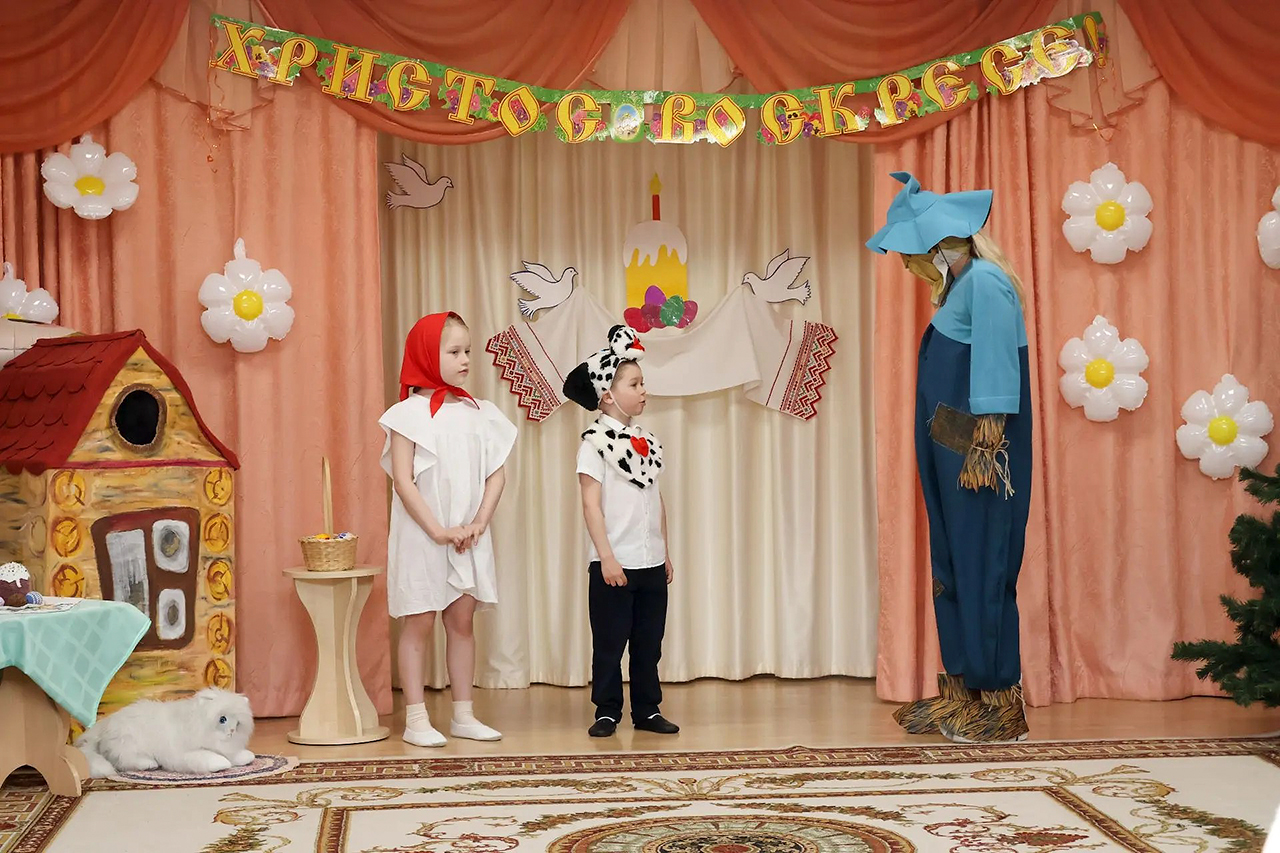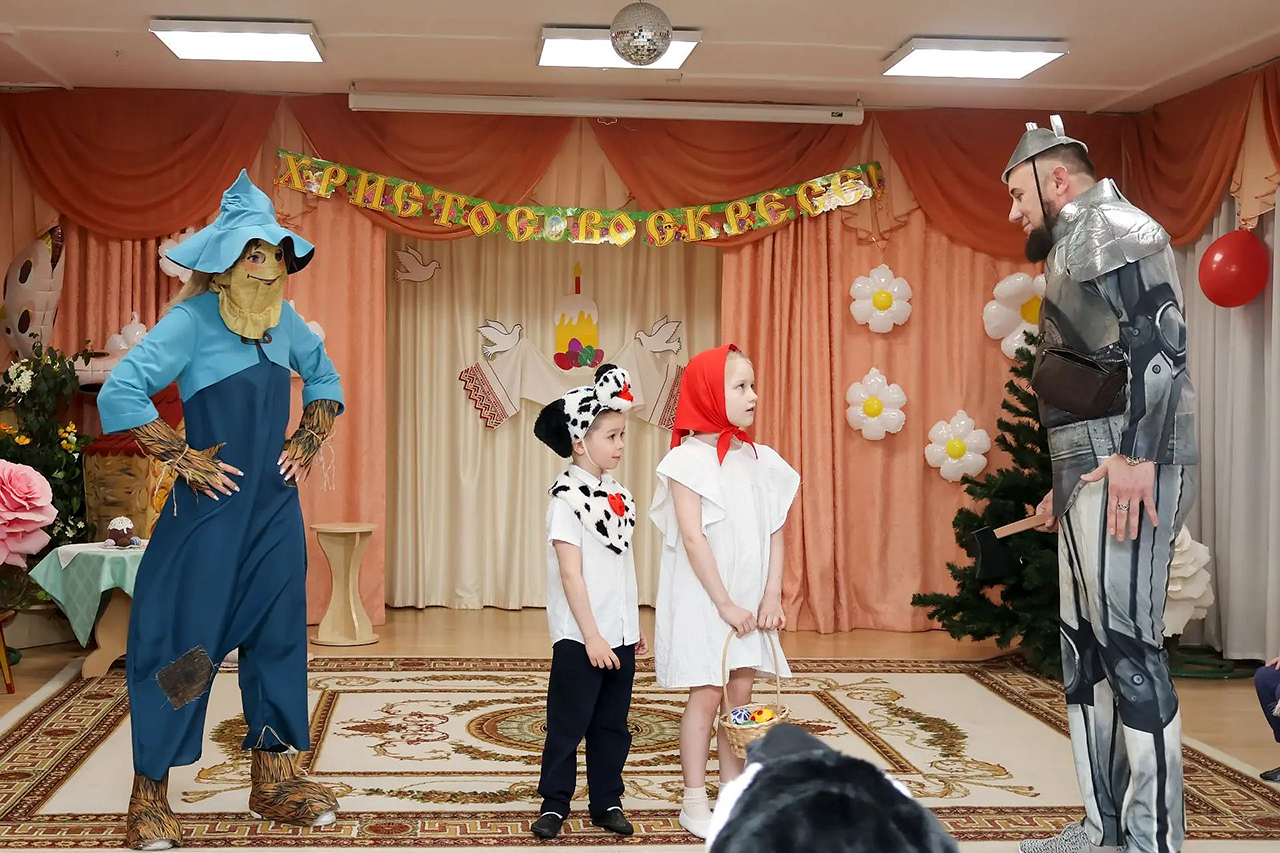16 апреля в детском саду № 31 деревни Медвежьи Озёра, в группе православного воспитания «Радуга» прошел праздник Светлой Пасхи. Дети с родителями под руководством воспитателей Л.М. Изотовой и О.Б. Нефедовой и музыкального руководителя Г.М. Маловой подготовили спектакль по мотивам сказки «Волшебник Изумрудного города».