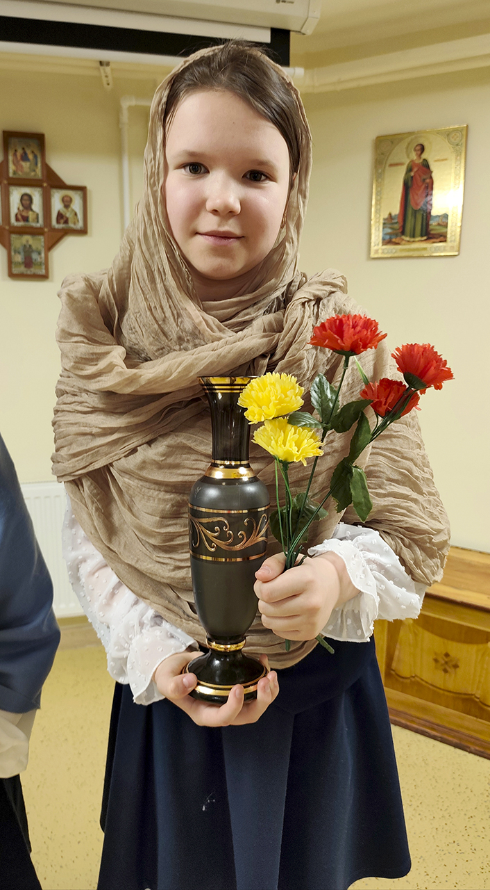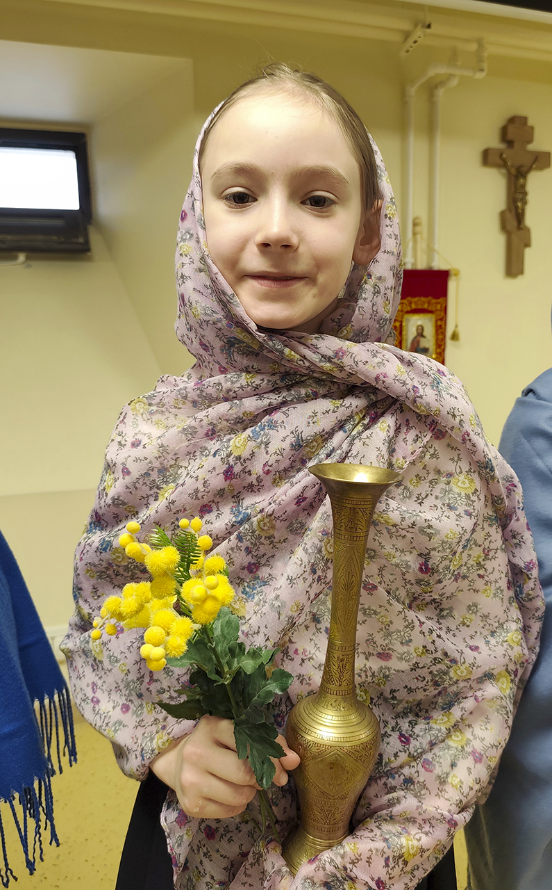 Затем ребята читали поздравительные стихотворения, в том числе собственного сочинения, а родители сказали свои добрые пожелания в православный женский день.