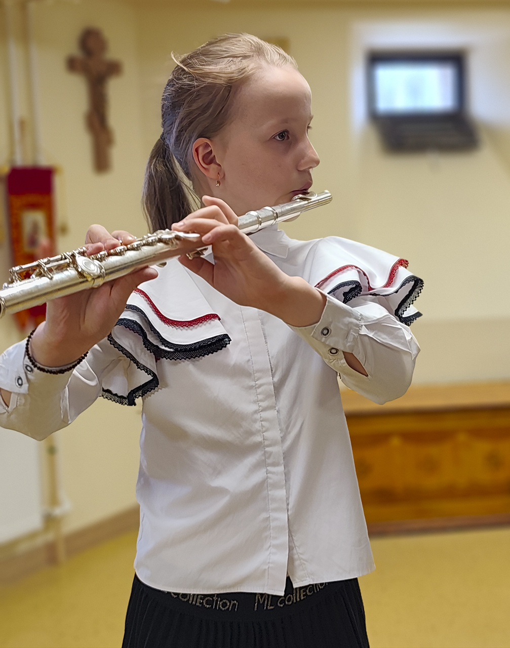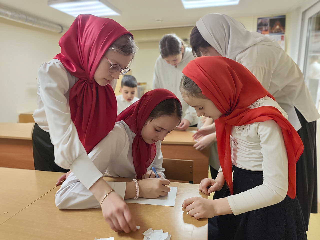 Встречу открыла директор школы Я. С. Немцева и передала поздравления с православным женским днём от благочинного Щёлковского церковного округа и настоятеля Ксениевского прихода протоиерея Андрея Ковальчука, а также от клириков прихода священников Сергия Ковальчука и Дмитрия Задорожного.