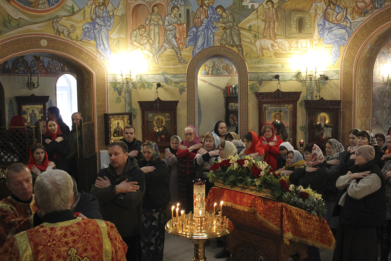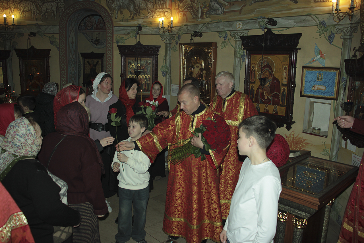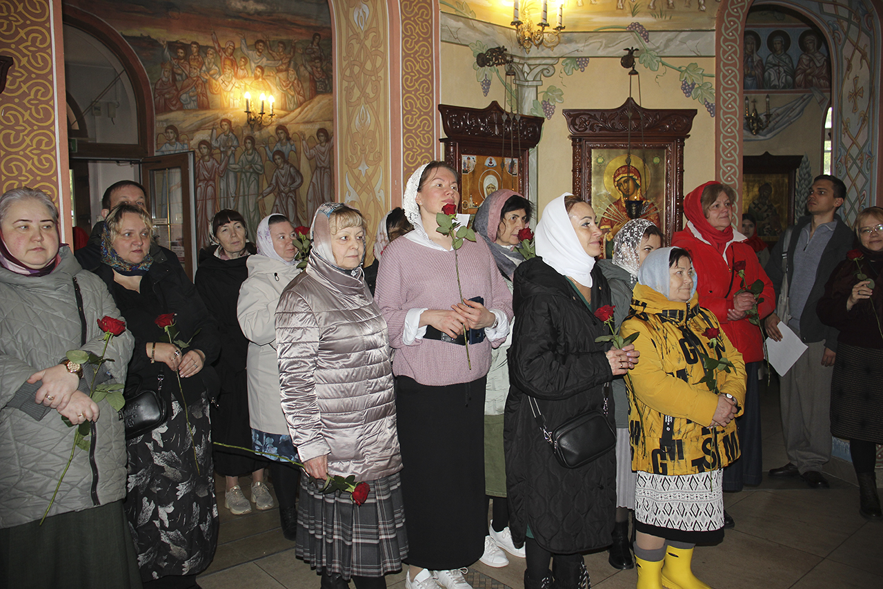 Божественную литургию совершил настоятель храма священник Виктор Долгих в сослужении клирика храма священника Андрея Кагарманова. В проповеди отец Виктор обратился к матерям, женам, сестрам, дочерям, напоминая им, что их служение семье и ближним – это путь к Богу. Всем прихожанкам Князь-Владимирского храма были преподнесены цветы.
