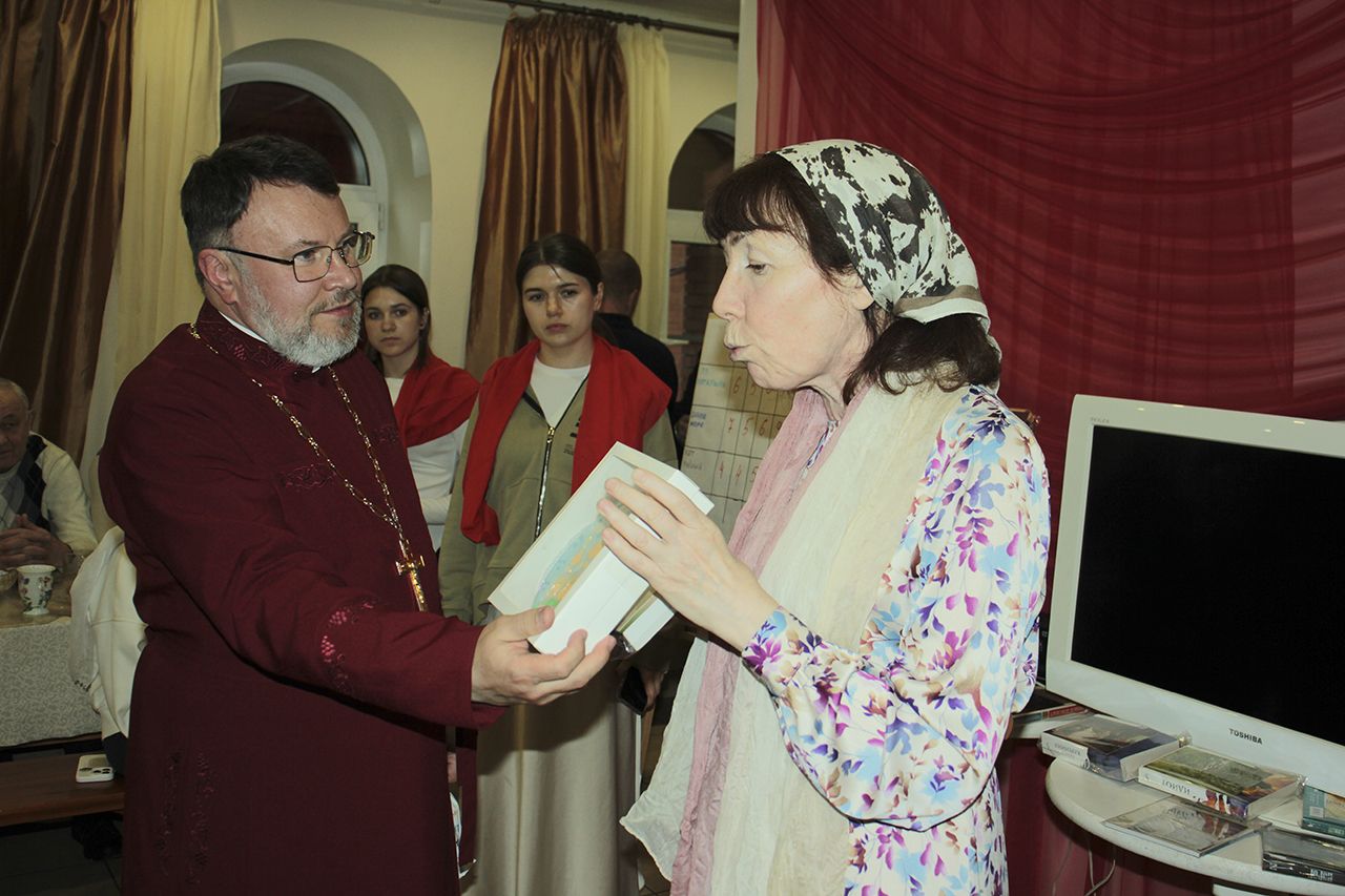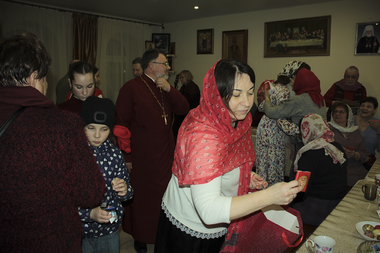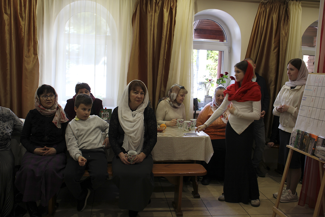 После праздничной трапезы, приготовленной мужской половиной прихожан, творческой студией Князь-Владимирского храма была проведена викторина, посвященная празднику жен-мироносиц. В ней приняли участие прихожане всех возрастов. Викторина была составлена из вопросов, относящихся к православной вере, музыке и культуре.