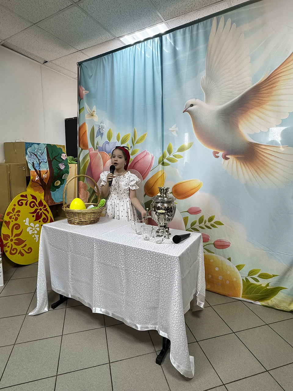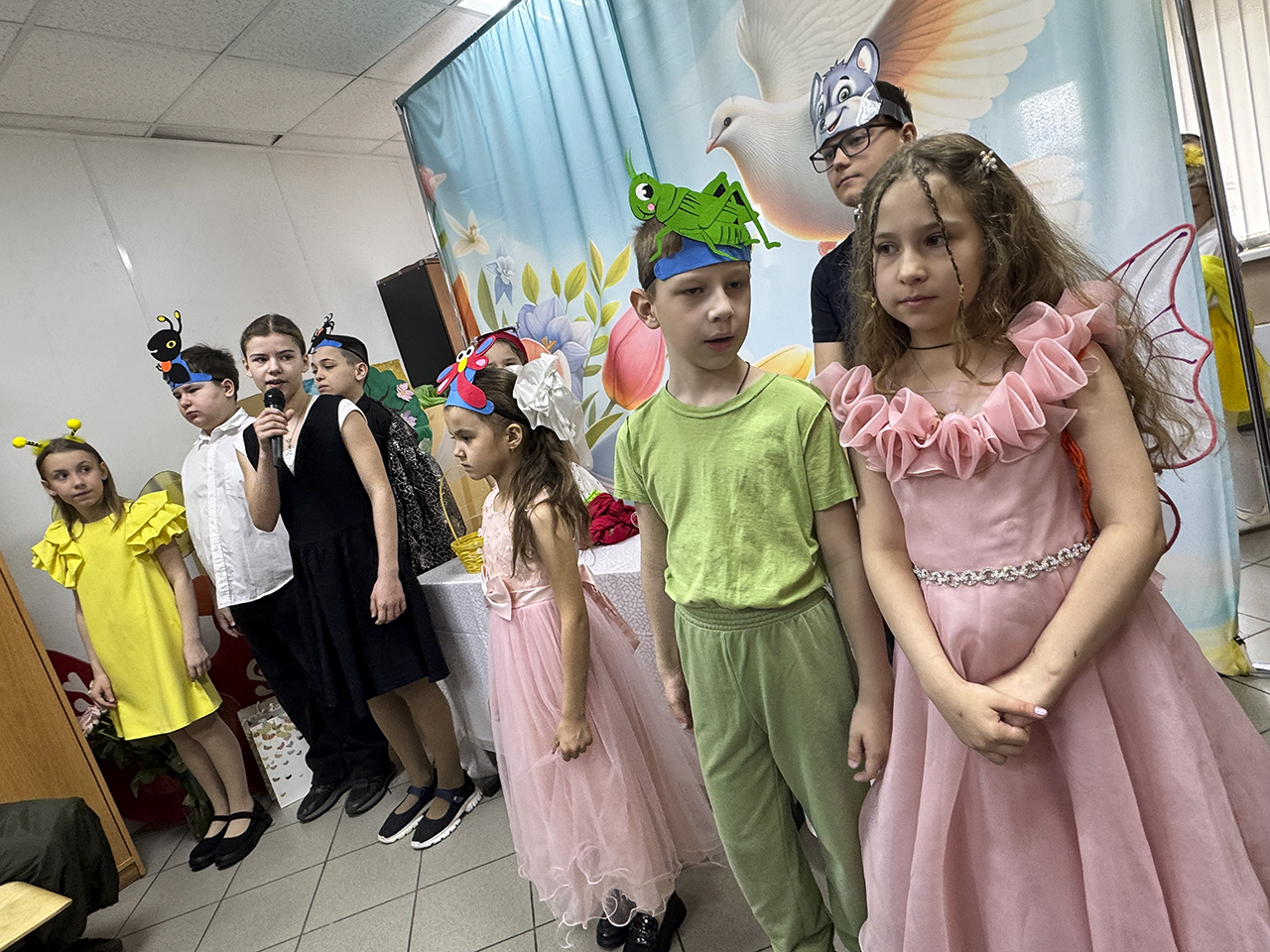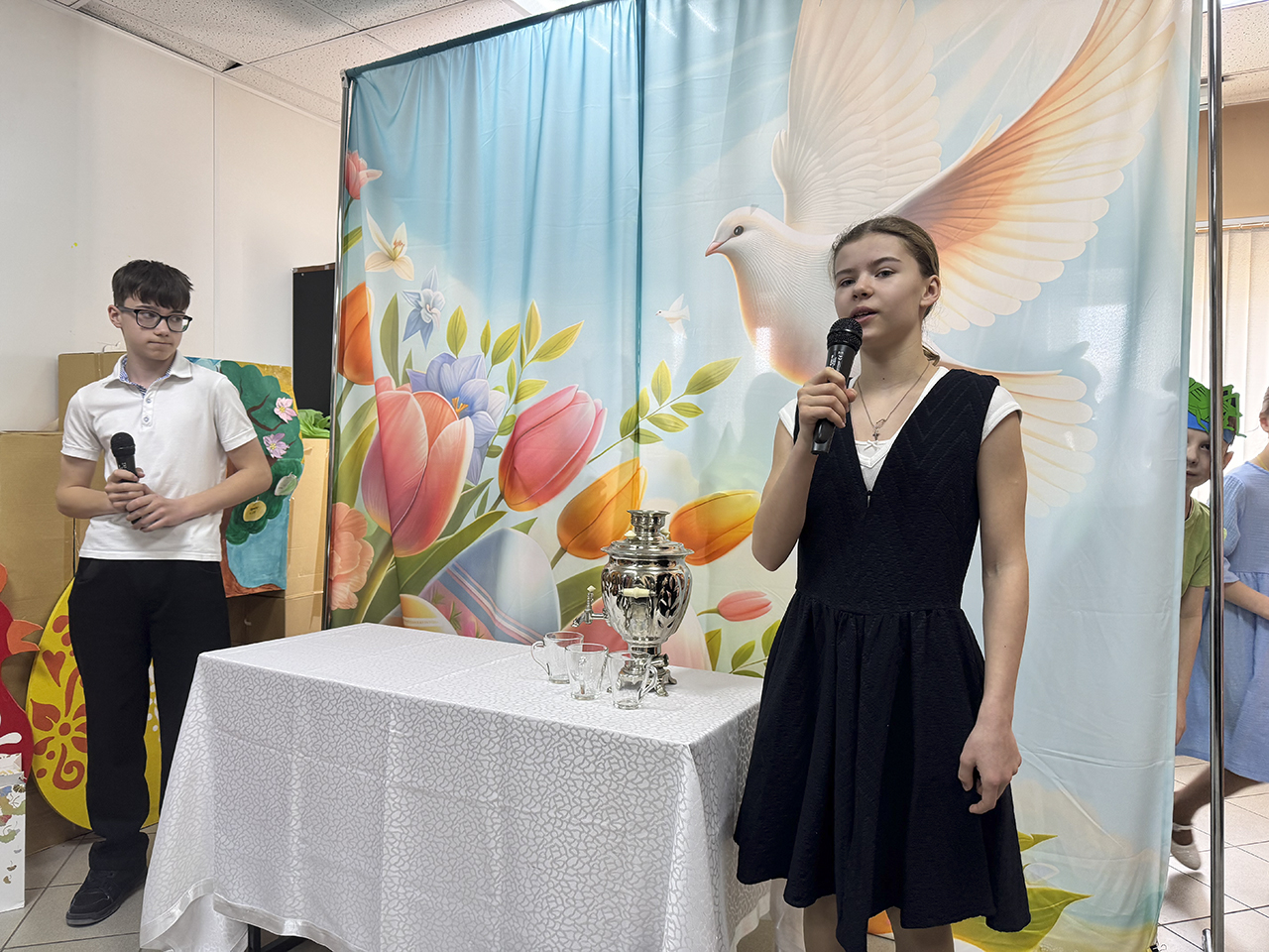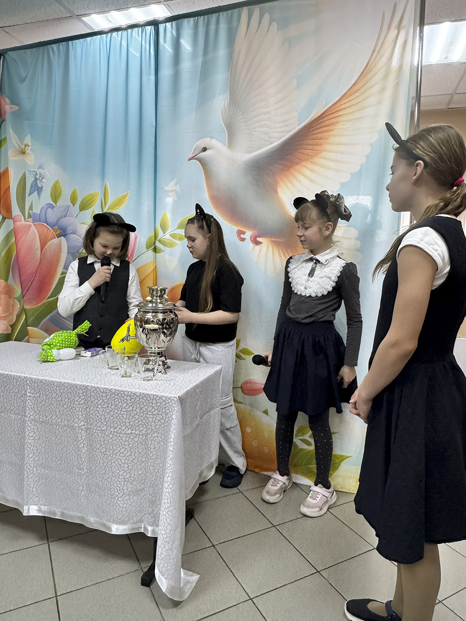 Воспитанники подготовили пасхальную сказку под названием «Муха-цокотуха». После выступления настоятель храма священник Витали Крикота подарил ребятам сладкие подарки.