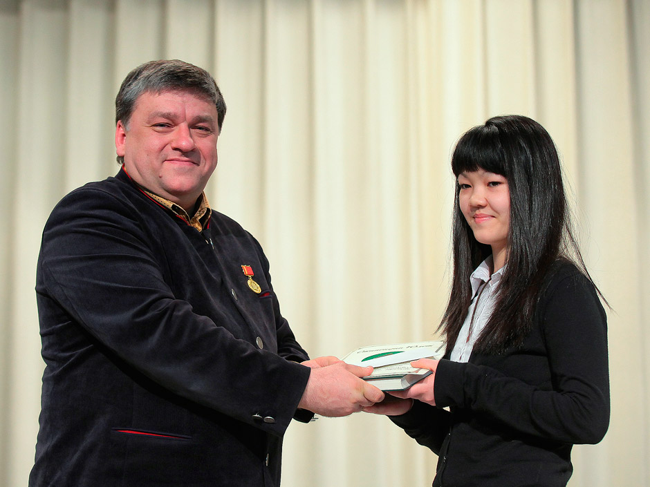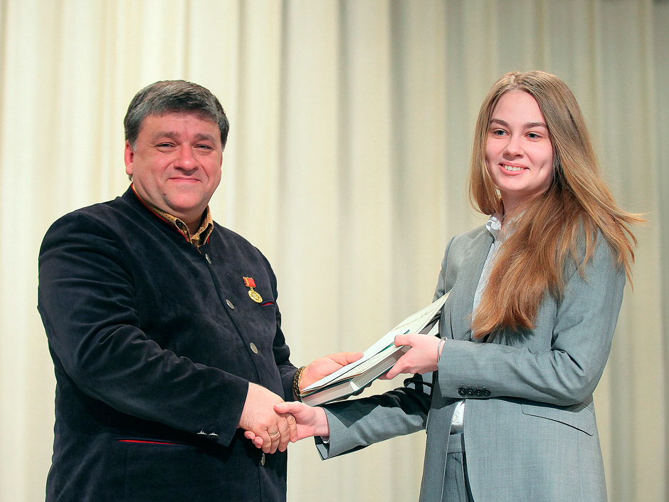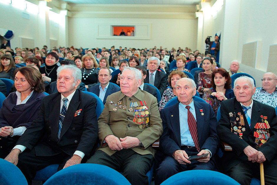 На Торжественной церемонии вручения именной стипендии с напутственными словами, обращенными к молодежи, выступили ветераны Великой Отечественной войны, Герой Советского Союза Г. К. Мосолов и Герой Советского Союза В.С. Котлов.